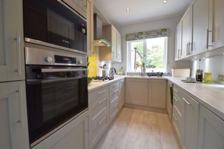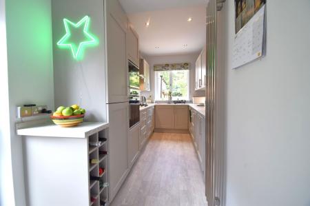 The extended kitchen is situated at the rear of the home and boasts a range of high quality units and integrated appliances including a Neff gas hob, a Bosch oven and grill with a large wall mounted radiator heating the room.