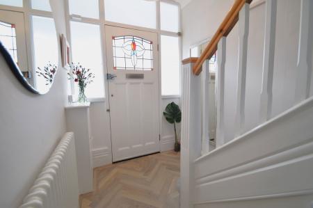 The accommodation comprises of a storm porch opening through to the delightful entrance hallway. The entrance hallway boasts a ground floor wash room, herring bone flooring and a large door with bespoke stained glass insert.