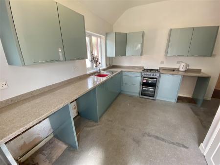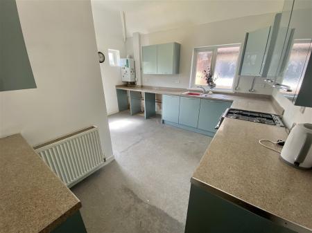 KITCHEN 13' 8" x 11' 9( narrowing to 7'9")(4.17m x 3.58m) Fitted with a range of matching base and wall units, stainless steel sink, space for cooker, plumbing for washing machine, Upvc double glazed window, Valient gas combi boiler.