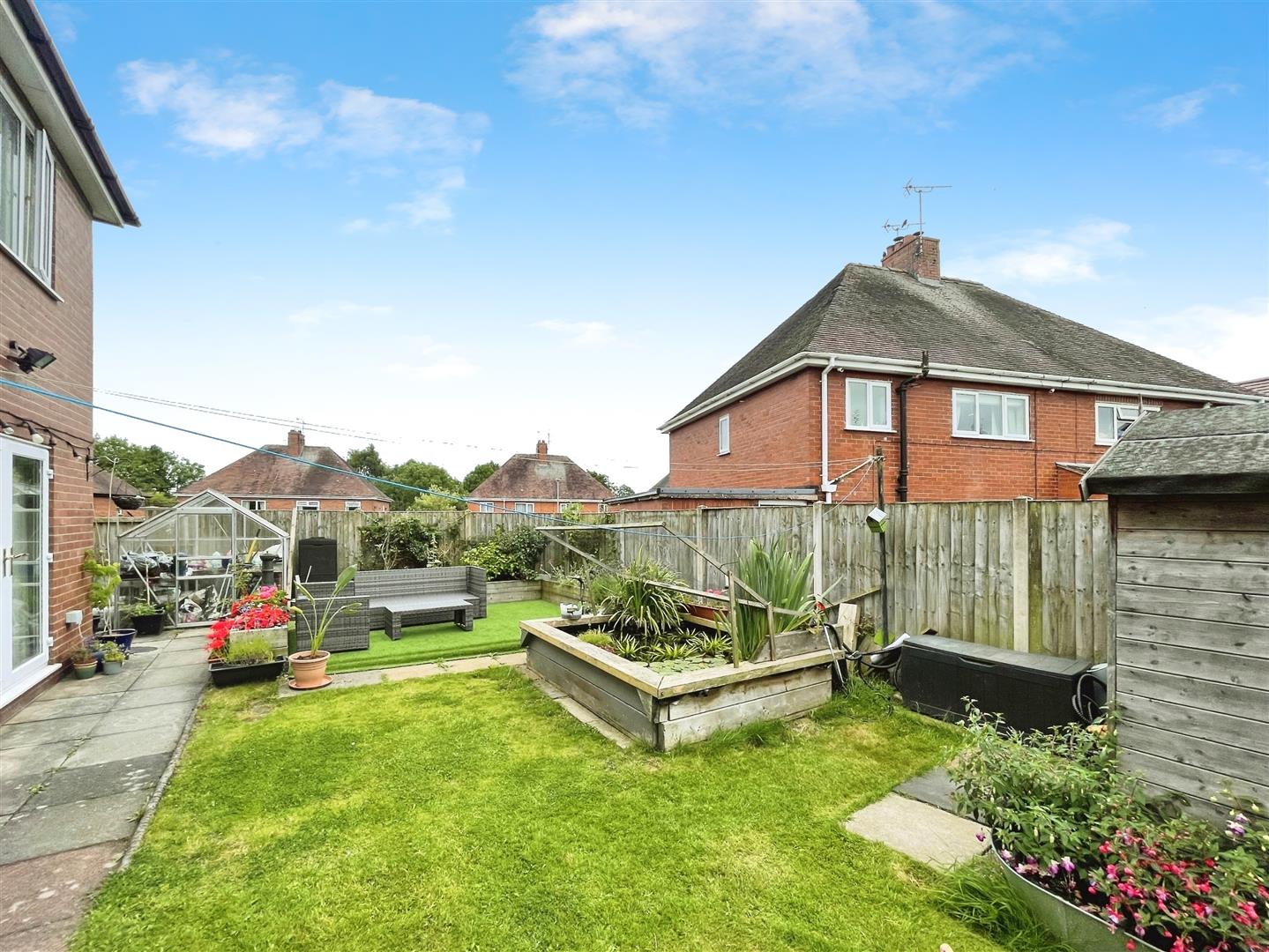 - Lovely Rear Garden with Patio, Lawn and a Pond