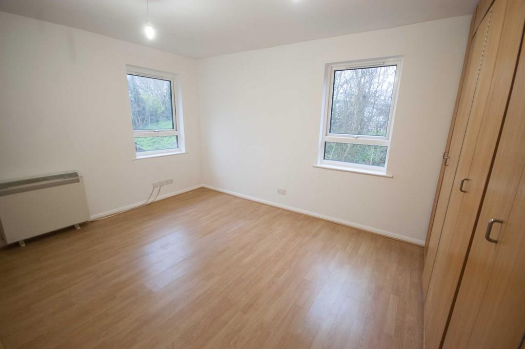 Dual aspect room with double glazed windows to rear and side, storage heater, built in wardrobe/cupboard, built in pull-down double bed frame with cupboards and hanging/storage space either side, laminate flooring, opens to kitchen.