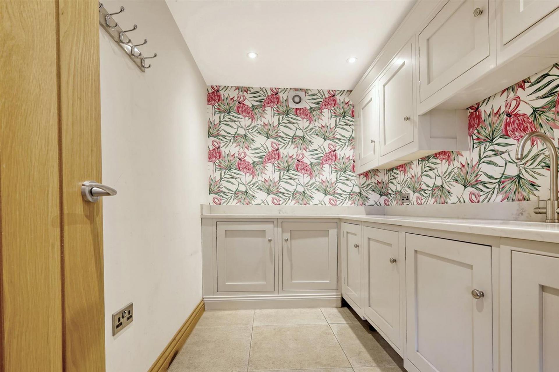 The ground floor offers five generously proportioned bedrooms, four of which benefit from en-suite shower rooms, making it ideal for multi-generational living, guests, or growing families. A separate utility room adds practical convenience, keeping day-to-day living seamless and organised.
