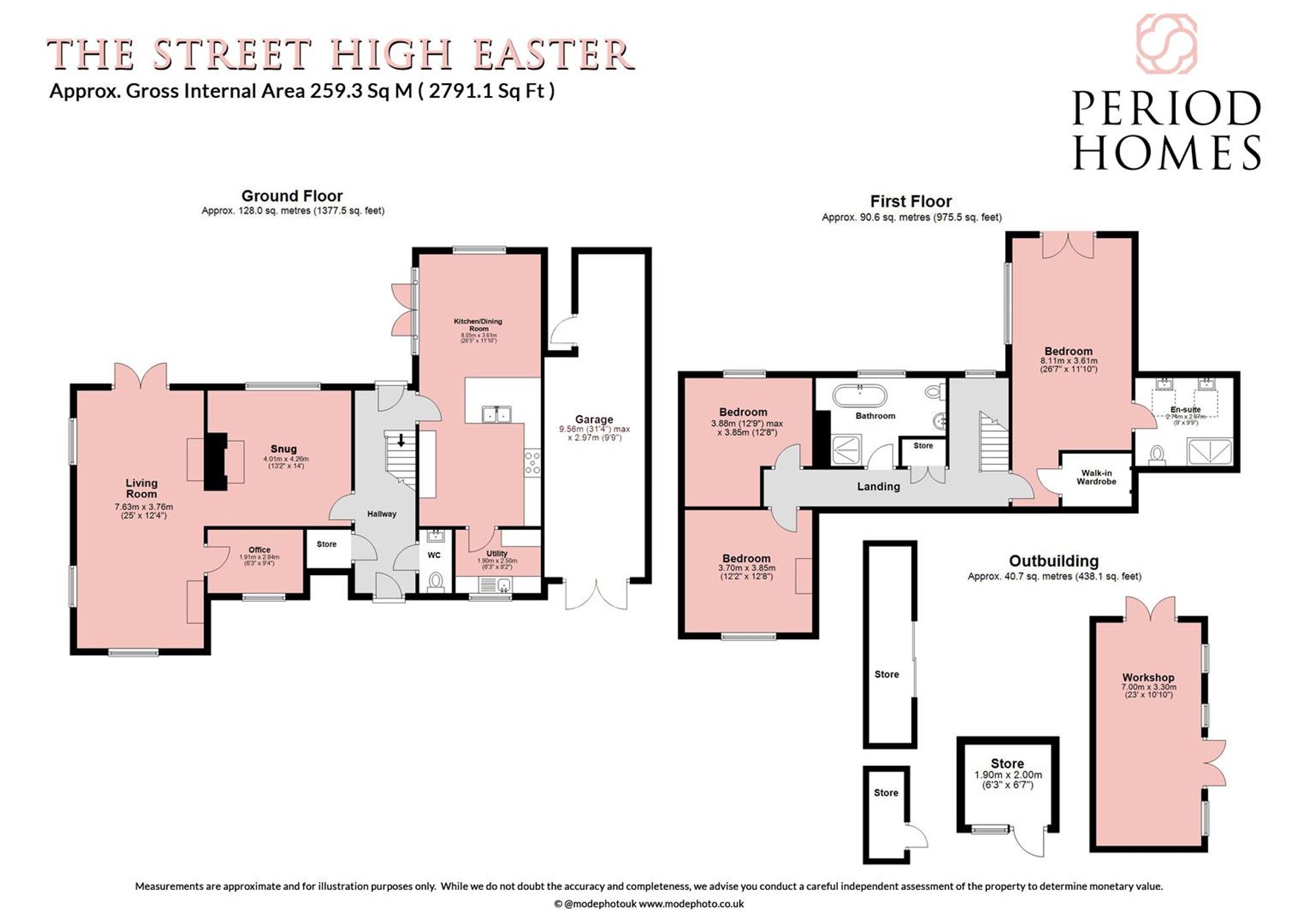 Practicality has been equally considered, with a garage and porch, fully wired workshop, additional outbuildings for storage, updated soffits and guttering, and annual boiler servicing ensuring everything runs as smoothly as it looks.