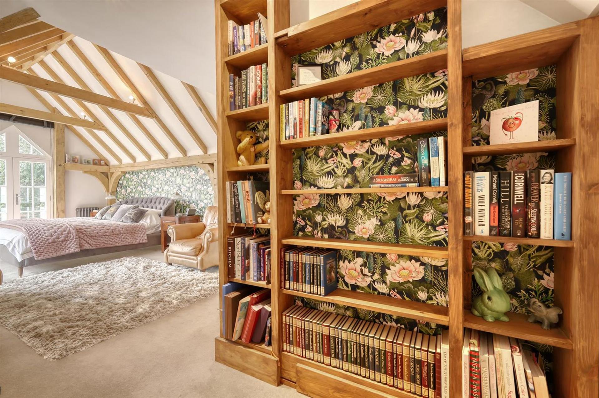 Across the years, the home has been enhanced with thoughtful details: reinstated cast iron fireplaces with wood surrounds, a bespoke oak staircase, a glass Juliet balcony, hardwired sound systems, and a beautifully hand-painted kitchen. Bathrooms have been elegantly updated, and a dressing room with bespoke fitted furniture now graces the main bedroom – complete with a secret door hidden behind a bookshelf. Even the gardens have been refined, with soak-away chambers, mature planting, and multiple seating areas that invite quiet moments or lively gatherings.