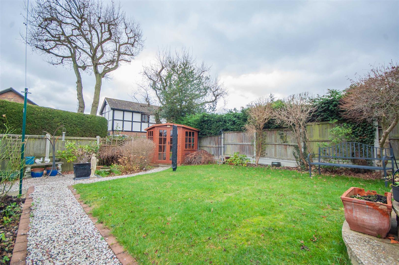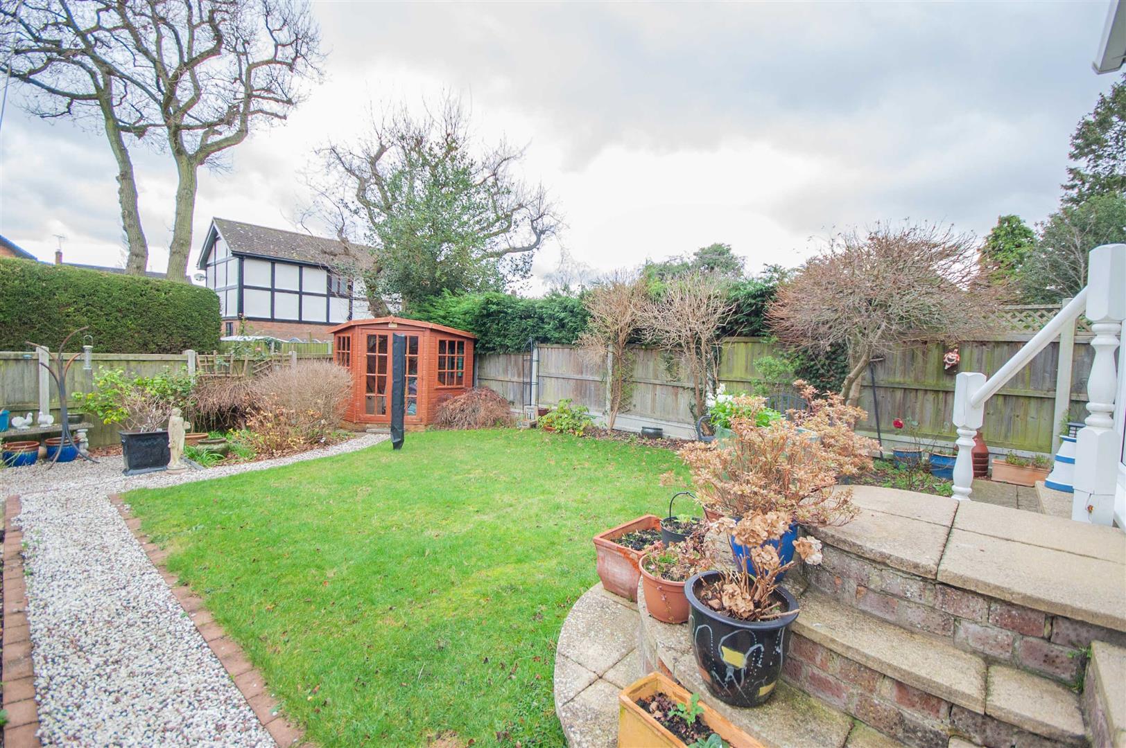 Rear Garden: - Paved patio to immediate rear, door to garage, mature shrubs to border, rest laid to lawn.