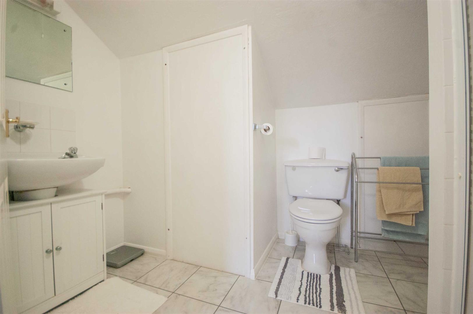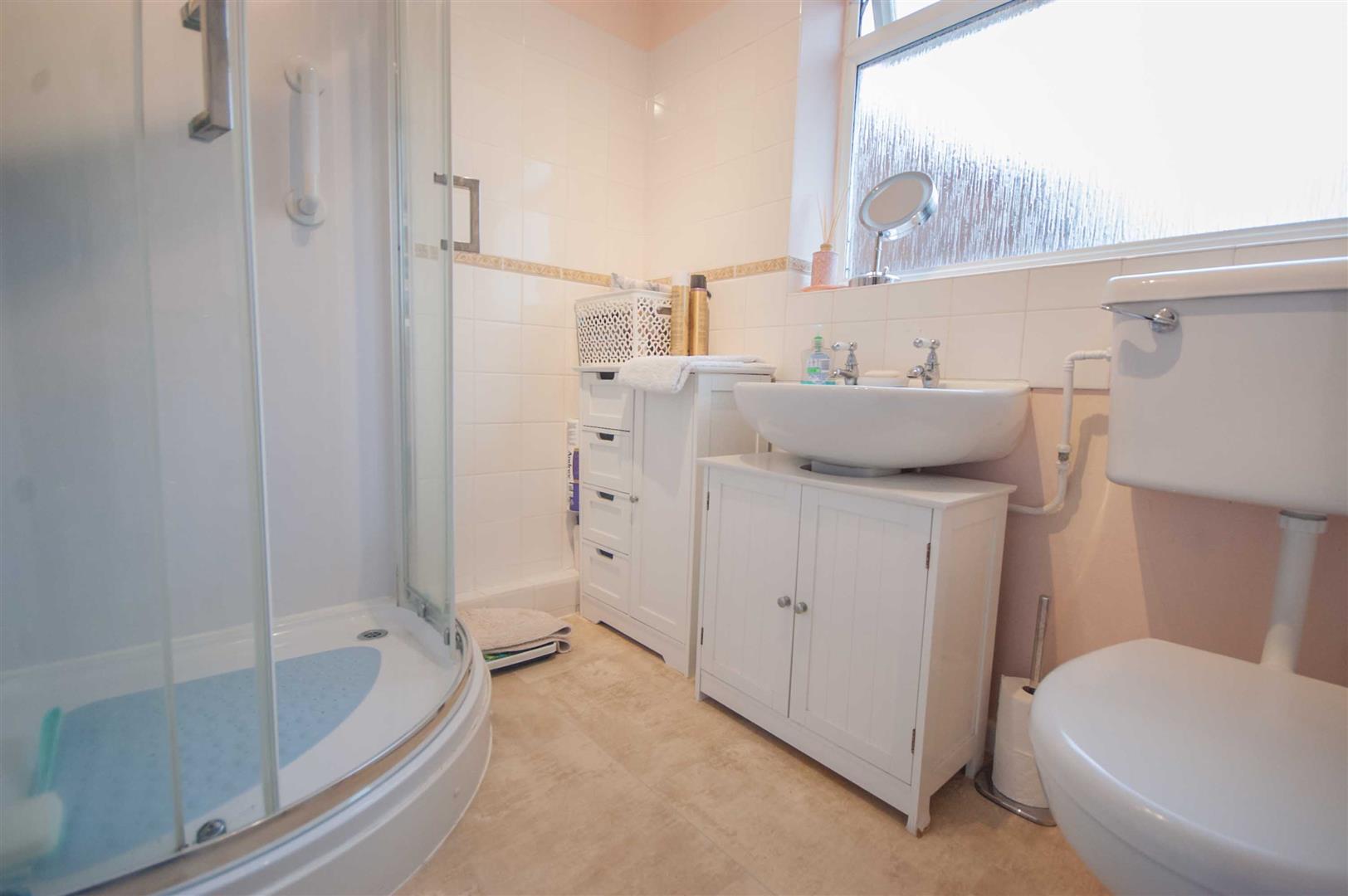 Shower Room: - 2.08m x 1.70m (6'10" x 5'7") - Obscure double glazed window to side, fully tiled shower cubicle, pedestal hand wash basin, low level W/C, radiator, part tiled walls.