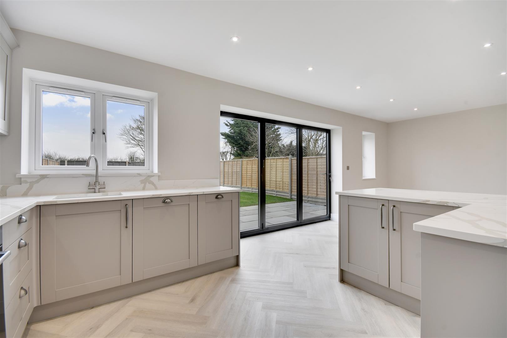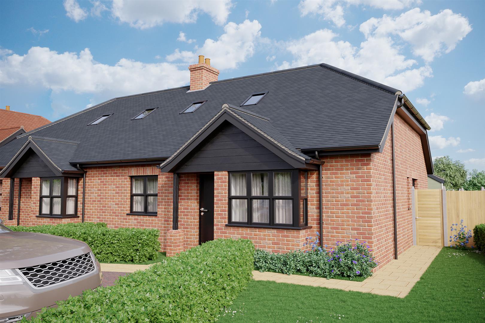 Plot 4, Banters Lane is a fabulous 3 double bedroom, semi-detached chalet style bungalow of over 1300 sq.ft boasting a spectacular open plan luxury kitchen / dining / family room with bi-folding doors opening onto a large, landscaped rear garden. There is a separate utility room and en-suites to two of the bedrooms along with a first-floor family bath/shower room all with quality fittings, and there is a home office/study providing a quiet space away from the main living area, perfect for those looking to work from home. An eco-friendly, energy efficient heat source pump is fitted and there is underfloor heating throughout the property. There is ample parking to the front on your own block paved driveway.