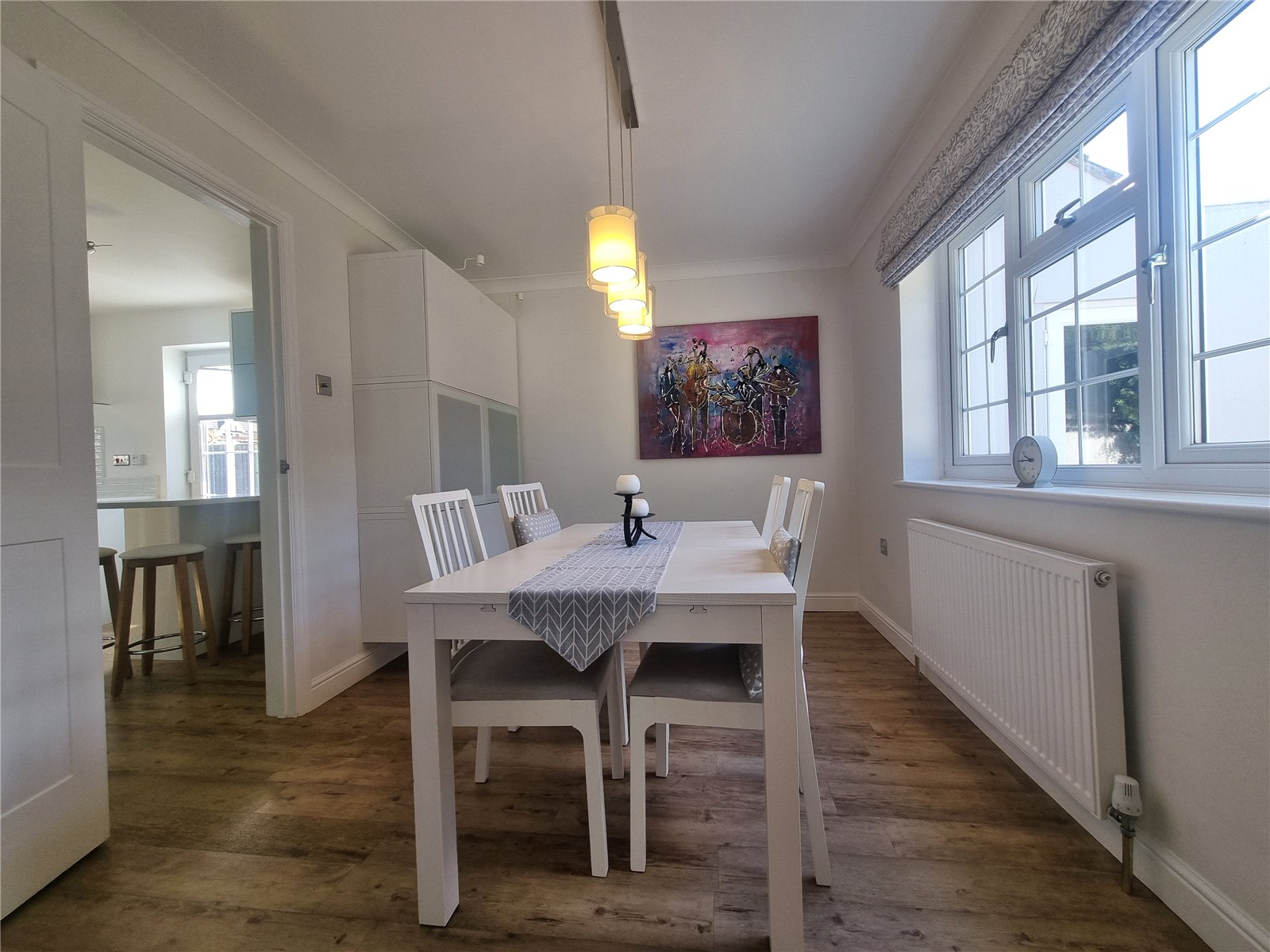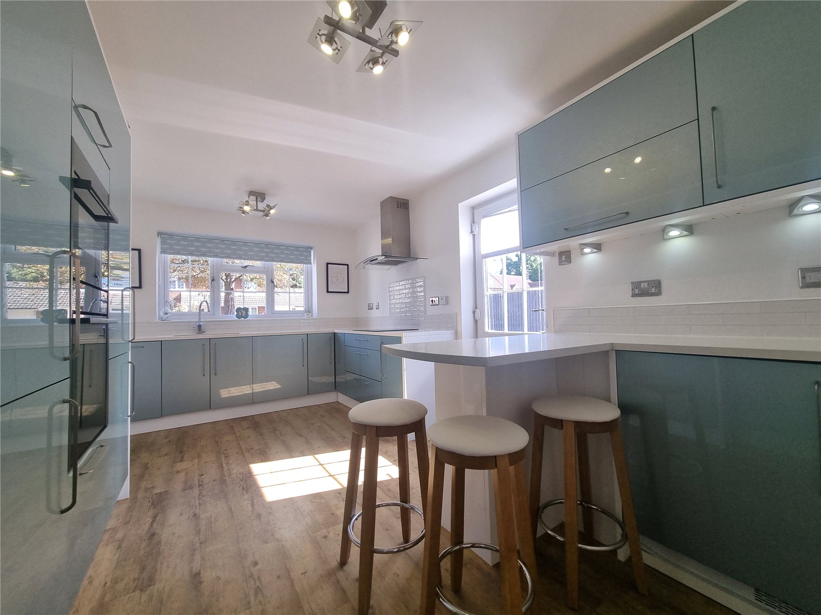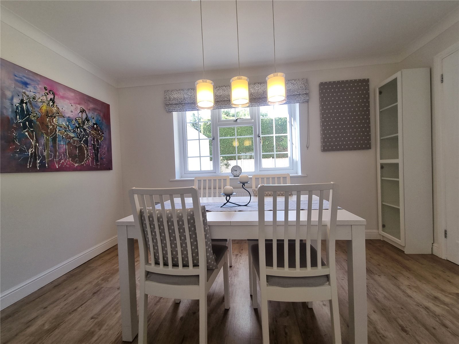 The property is well-presented throughout and has a modern feel, with the kitchen/breakfast room having been refitted in recent years. This space boasts a smart white quartz work surface and a range of integrated appliances including a Neff “hide and slide” oven and microwave, dishwasher, fridge freezer and halogen hob, together with a breakfast bar with space for stools.
