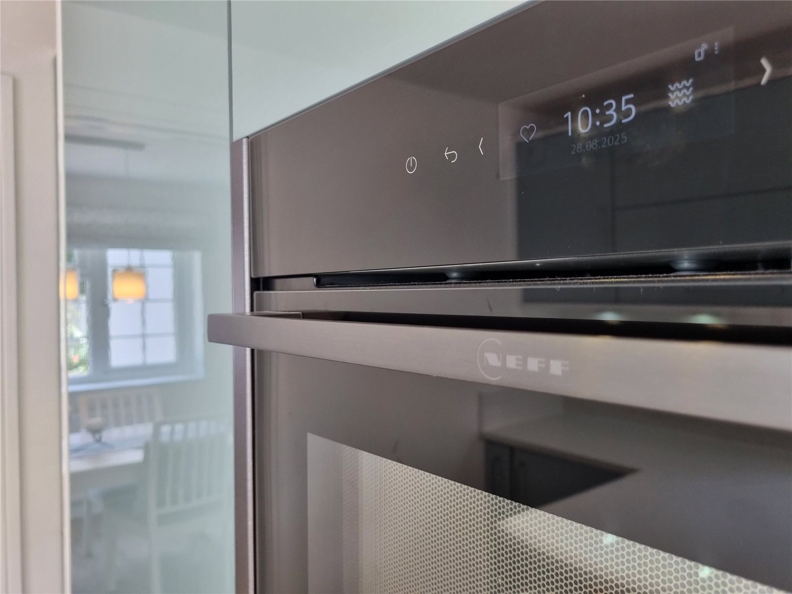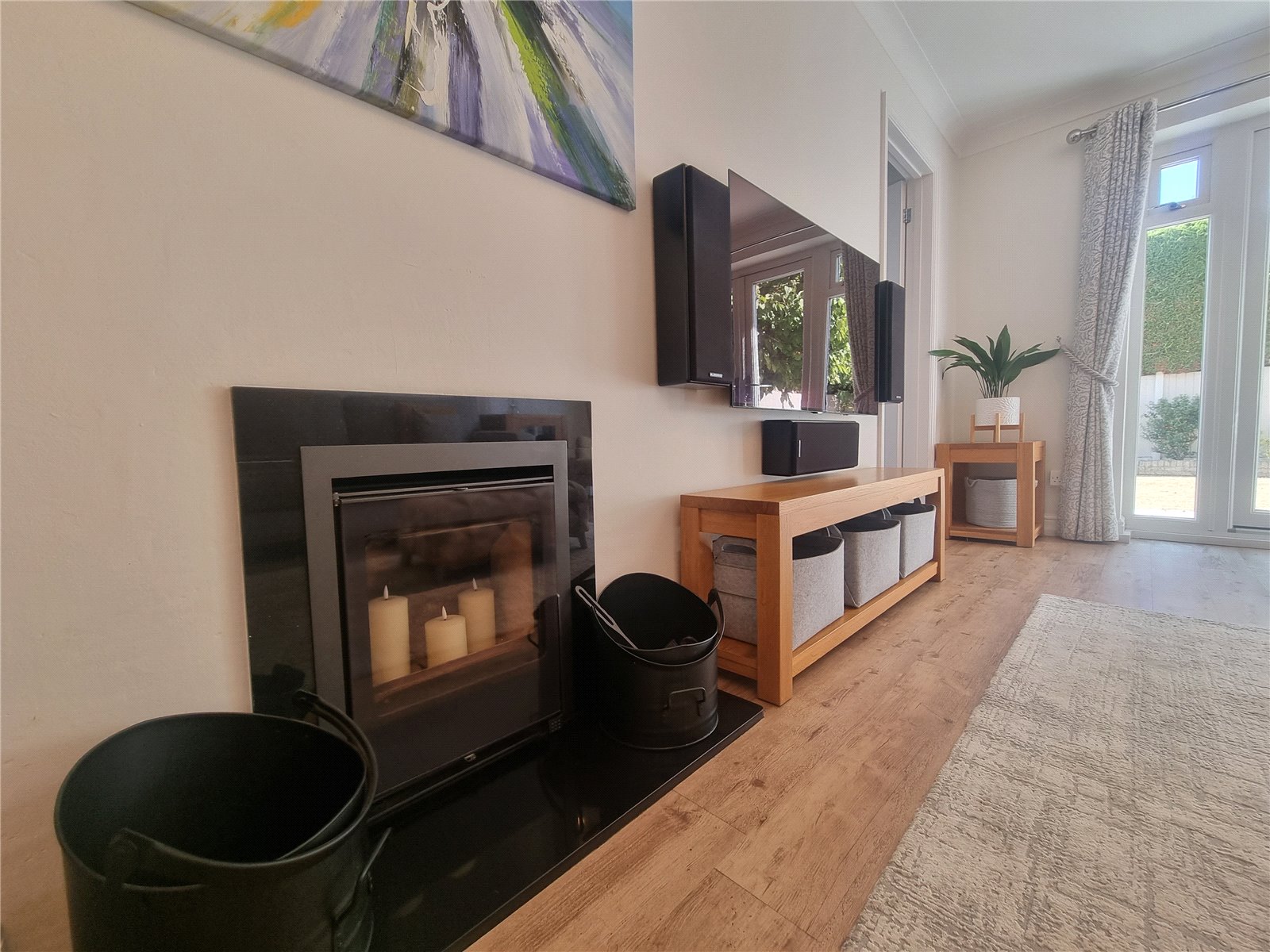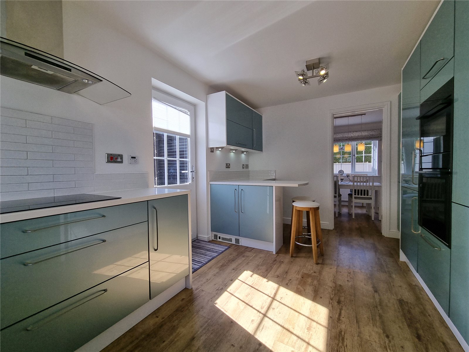 The property is well-presented throughout and has a modern feel, with the kitchen/breakfast room having been refitted in recent years. This space boasts a smart white quartz work surface and a range of integrated appliances including a Neff “hide and slide” oven and microwave, dishwasher, fridge freezer and halogen hob, together with a breakfast bar with space for stools.
