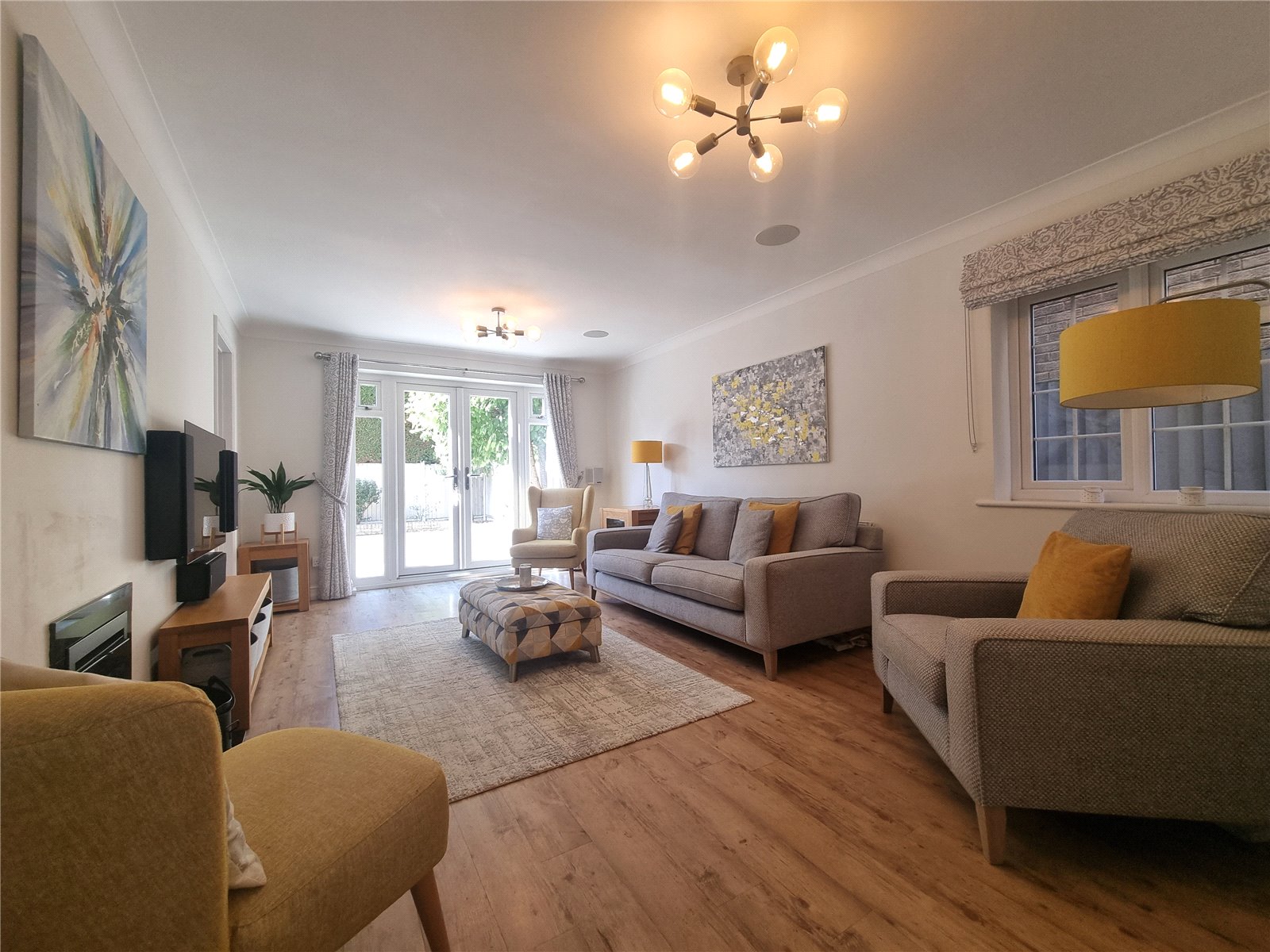 The sitting room is a generous space with French doors opening onto the garden and a feature chimney breast with wood burner. There is also a separate dining room and a good-sized study, making the ground floor a very practical layout for family life.