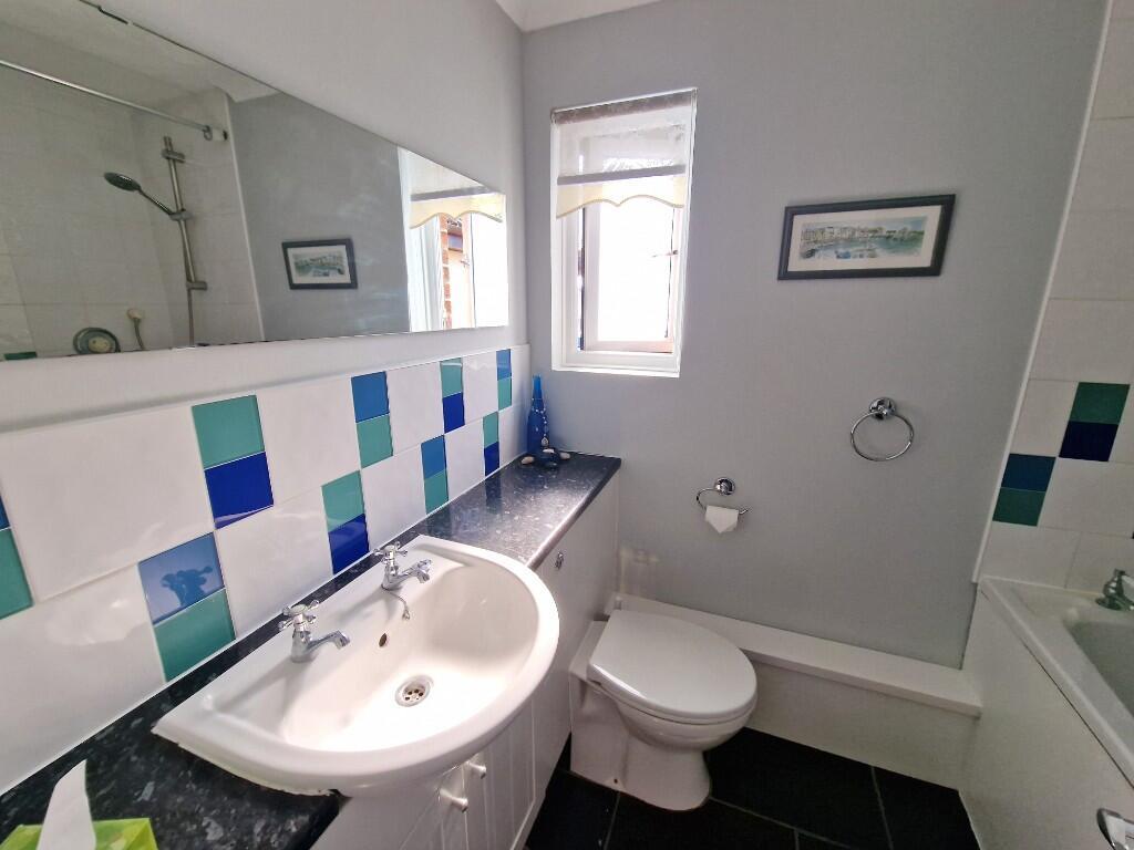 Bathroom - Obscure double glazed window to side, panel bath with wall mounted shower over bath, wc with push button flush, wash basin over vanity unit.