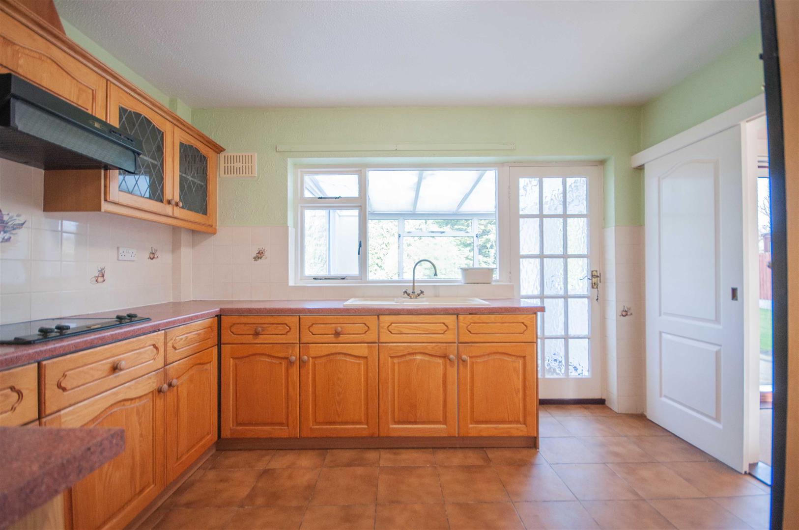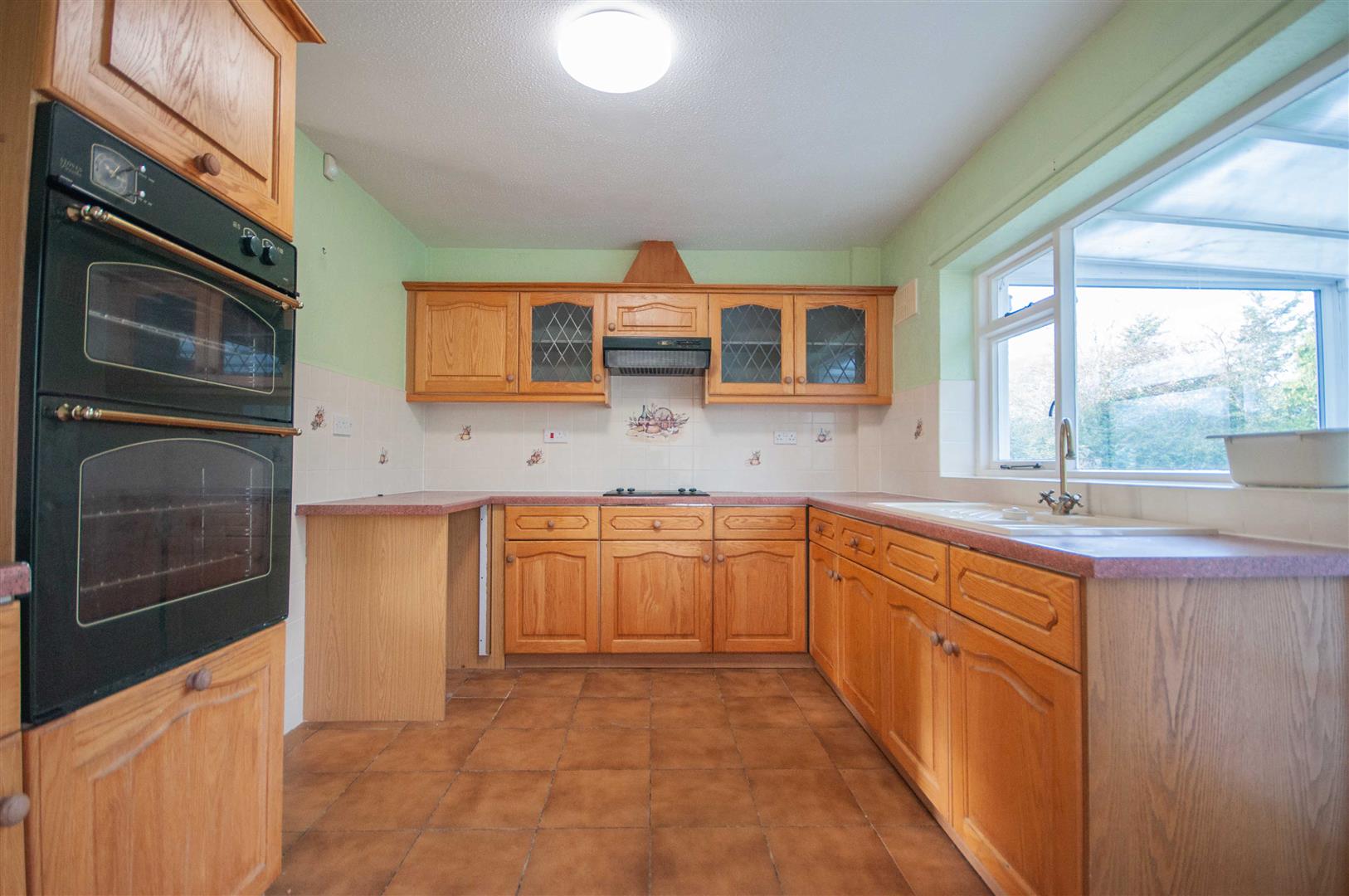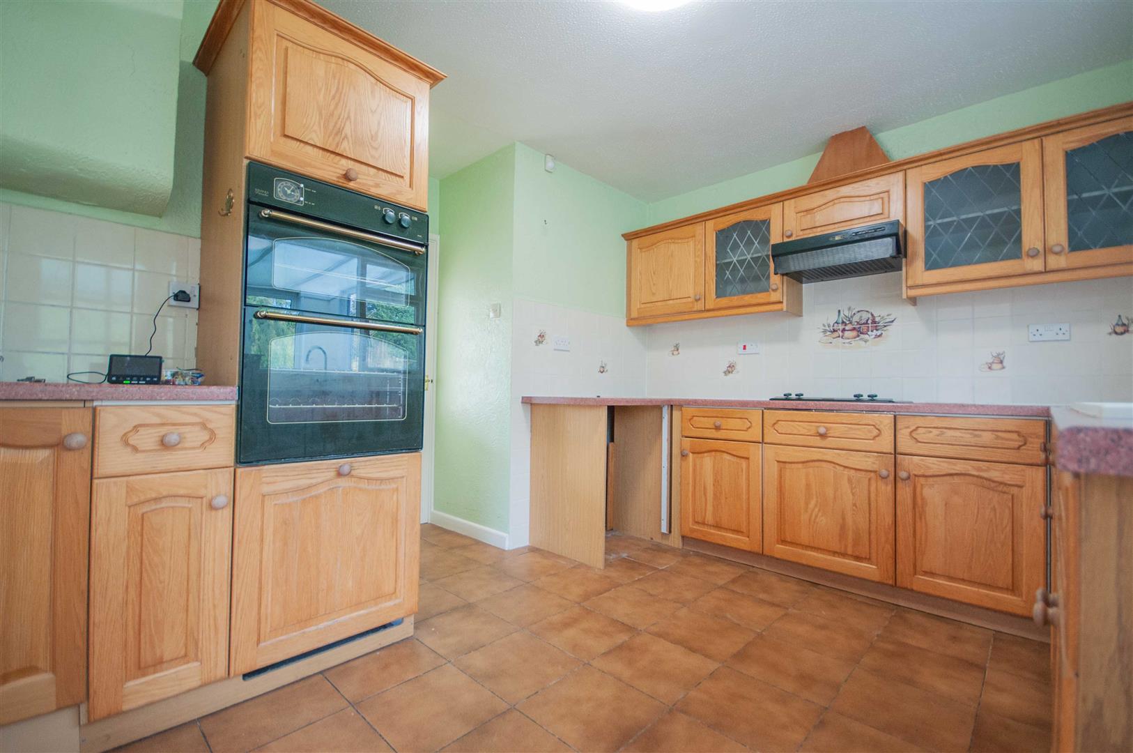 Kitchen: - 3.71m x 3.68m > 2.90m (12'2" x 12'1" > 9'6") - Window and door to conservatory, range of wall and base units, rolled edge work surfaces with sink inset, integrated double oven, electric hob with extractor over, dishwasher, sliding door to lounge, part tiled walls, tiled flooring.