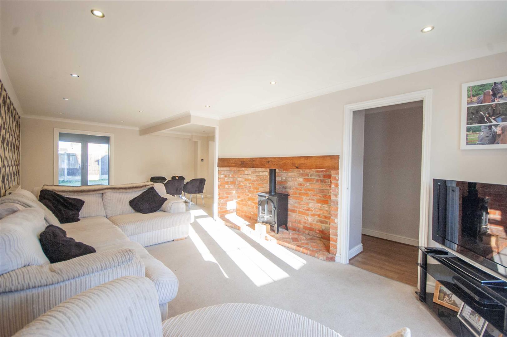 Lounge Diner: - 8.41m x 4.72m > 3.23m (27'7" x 15'6" > 10'7") - Double glazed bay window to front, doors to kitchen, study/play room/bedroom four, utility room, cloakroom, two radiators, cupboard.