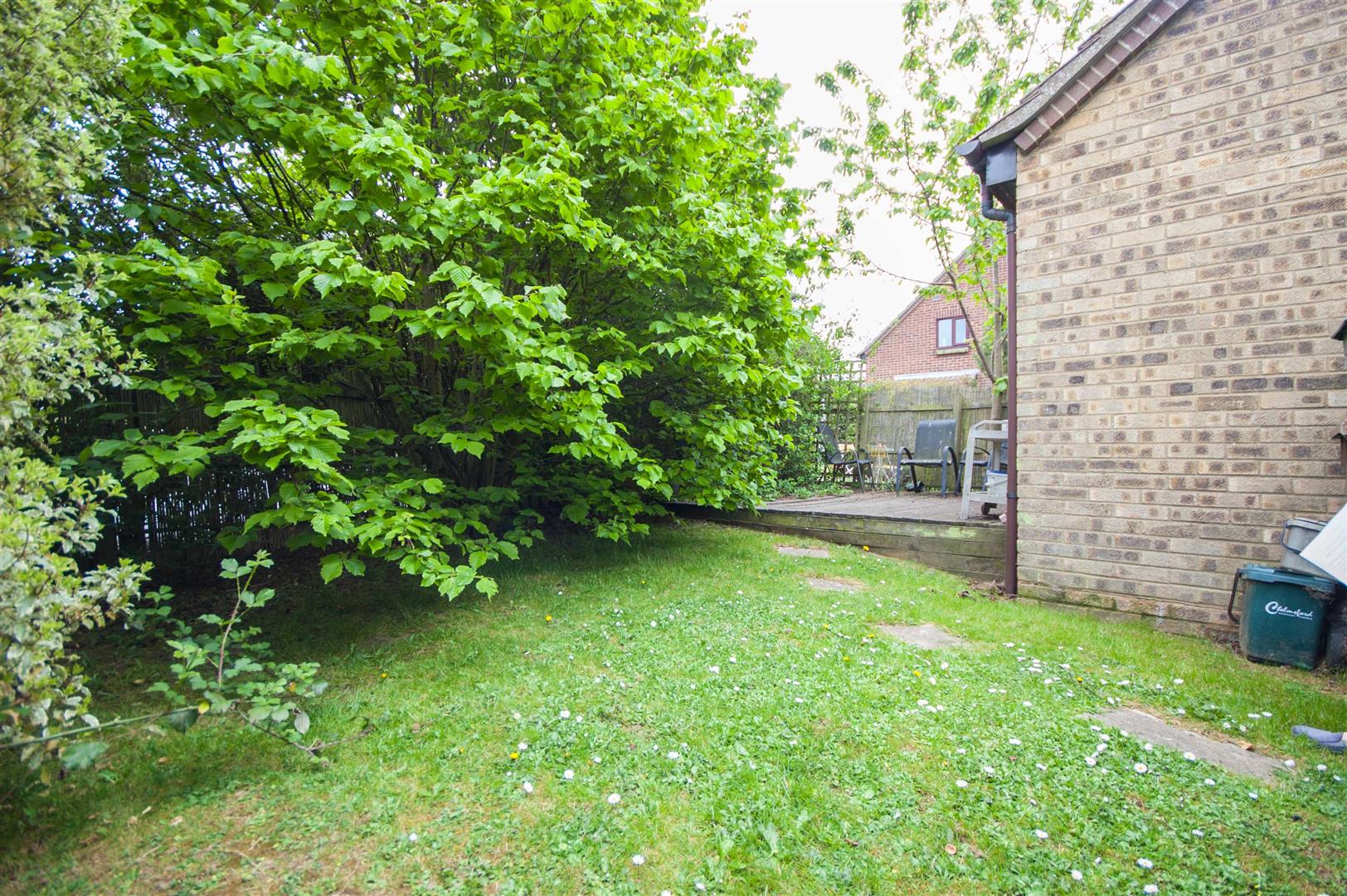 Garden: - Gated side access, decking area and shed, rest laid to lawn.