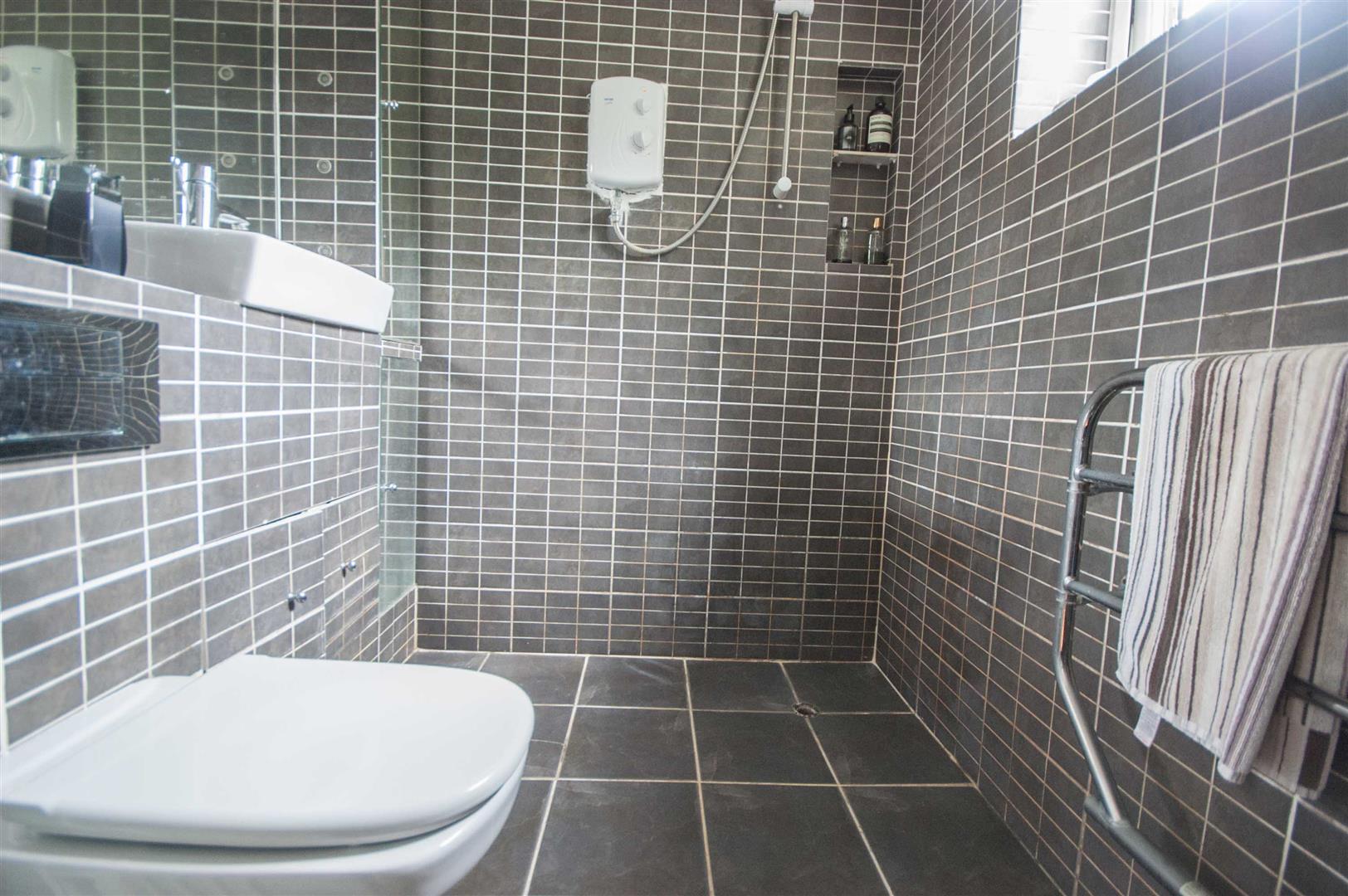 Wet Room: - Obscure double glazed window, fully tiled bathroom, shower to wall, low level W/C.