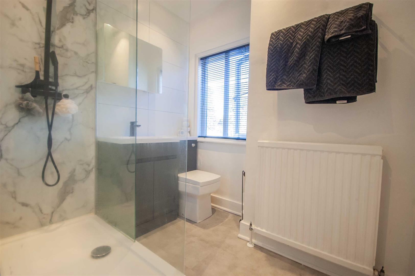 Shower Room: - 2.16m x 1.85m (7'1" x 6'1") - Double glazed window to rear, fully tiled double shower cubicle, vanity hand wash basin, low level W/C, radiator, part tiled walls, tiled flooring.