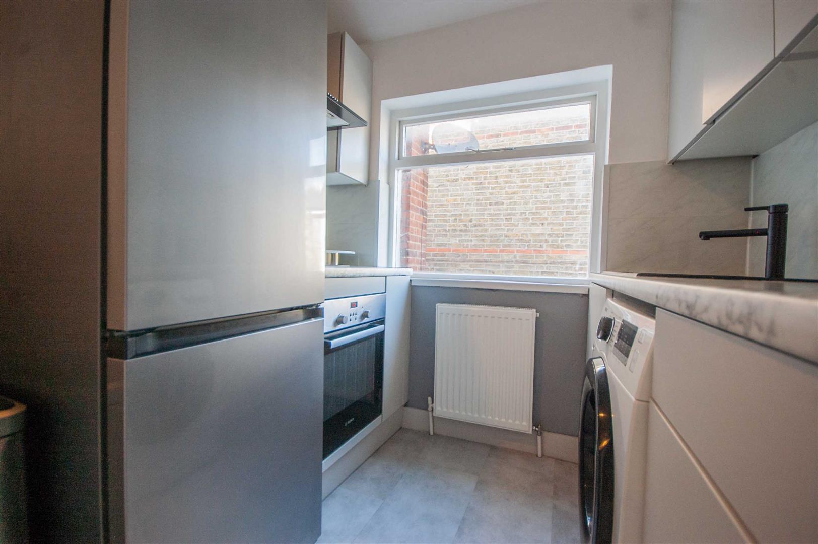 Kitchen: - 2.39m x 2.13m (7'10" x 7") - Glazed window to side, range of wall and base units, rolled edge work surfaces with stainless steel sink inset, integrated hob with extractor over, low level W/C, washing machine, fridge freezer, part tiled walls, loft access, door to shower room.