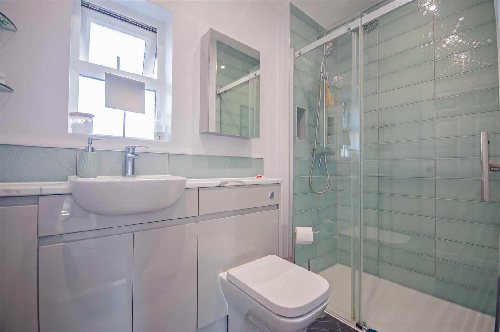 Shower Room: - 2.51m x 1.24m (8'3" x 4'1") - Obscure double glazed window to rear, fully tiled double shower cubicle, low level W/C, vanity hand wash basin, chrome towel radiator, part tiled walls.