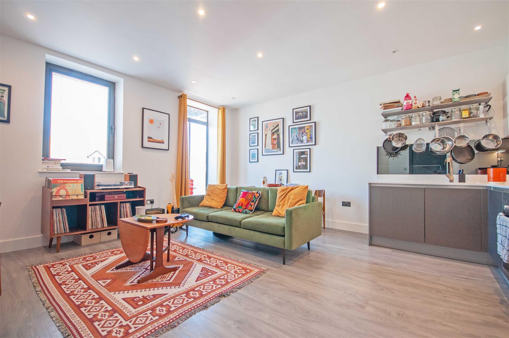 Open Plan Living Area: - 5.16m x 4.55m (16'11" x 14'11") - Double glazed window to front, door to balcony, cupboard, wood effect flooring, open plan to:-