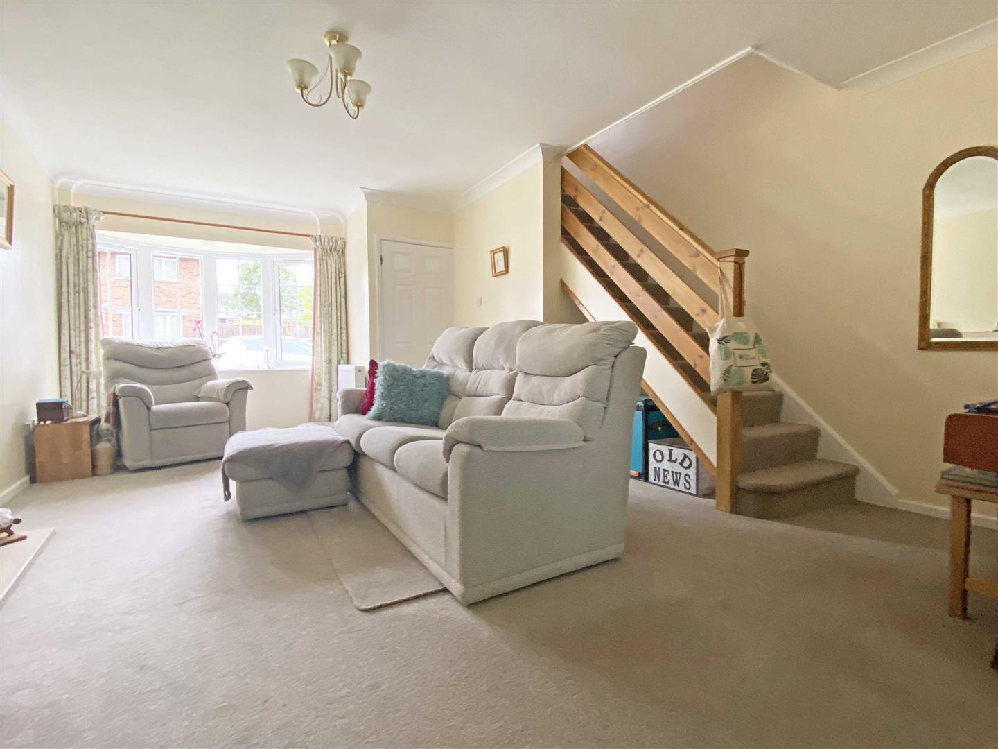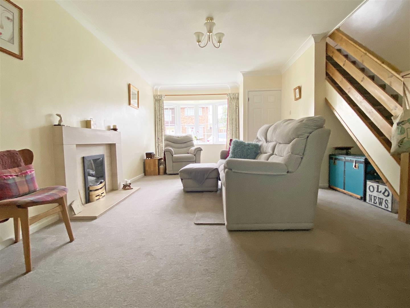Lounge: - 5.79m x 4.34m (19' x 14'3") - Double glazed bow window to front, double doors to dining room, stairs to first floor, radiator.