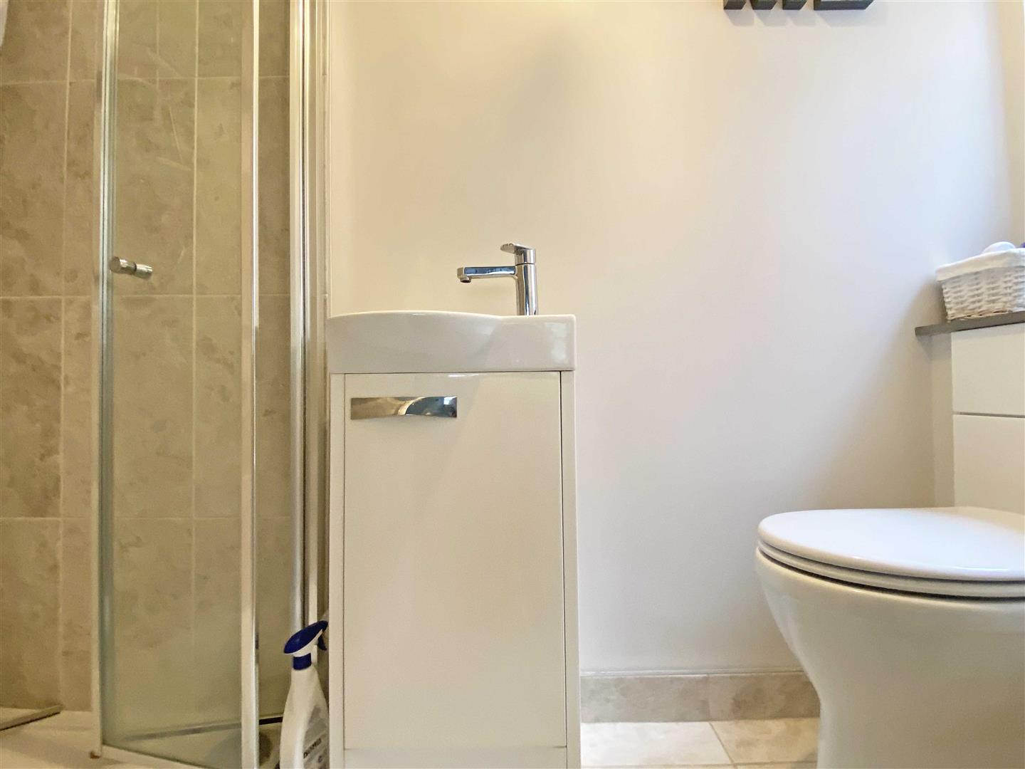 En-Suite: - Obscure double glazed window to side, fully tiled shower cubicle, vanity hand wash basin, low level W/C, chrome towel radiator, part tiled walls, tiled flooring.