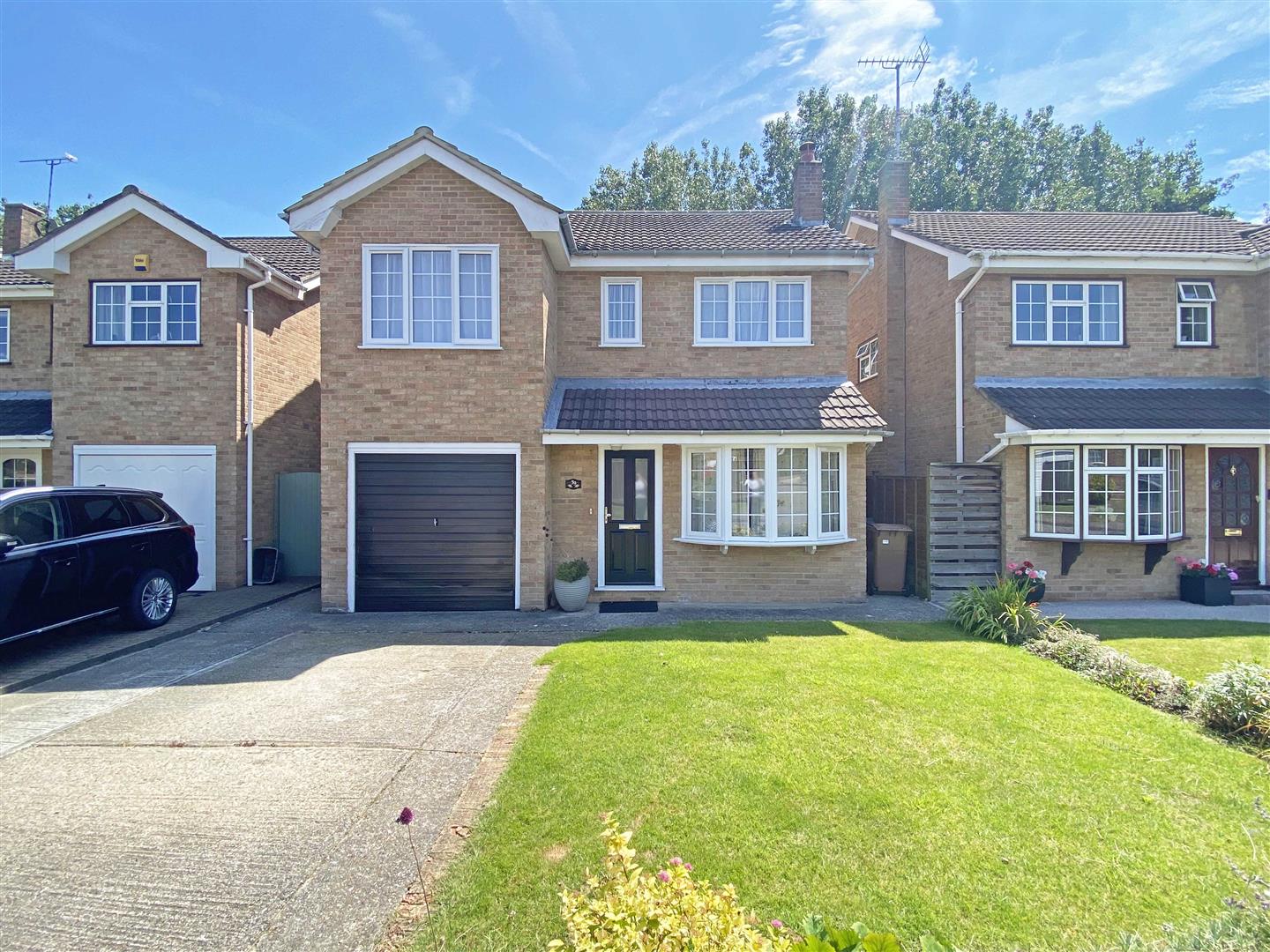 Frontage, Garage & Driveway: - Driveway parking to front, garage with up and over door, rest laid to lawn.