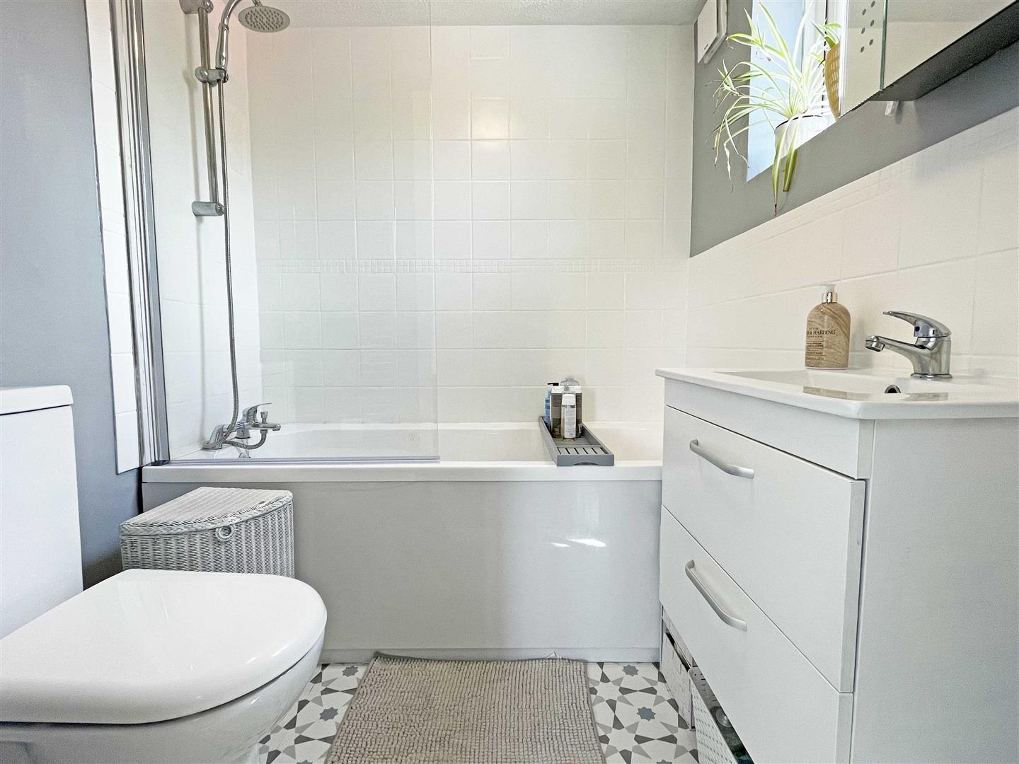 Bathroom:- - 1.70m x 1.70m (5'07" x 5'07") - Double glazed opaque window to front, bath with shower over, vanity hand wash basin, low level W/C, chrome heated towel rail, tiled flooring.