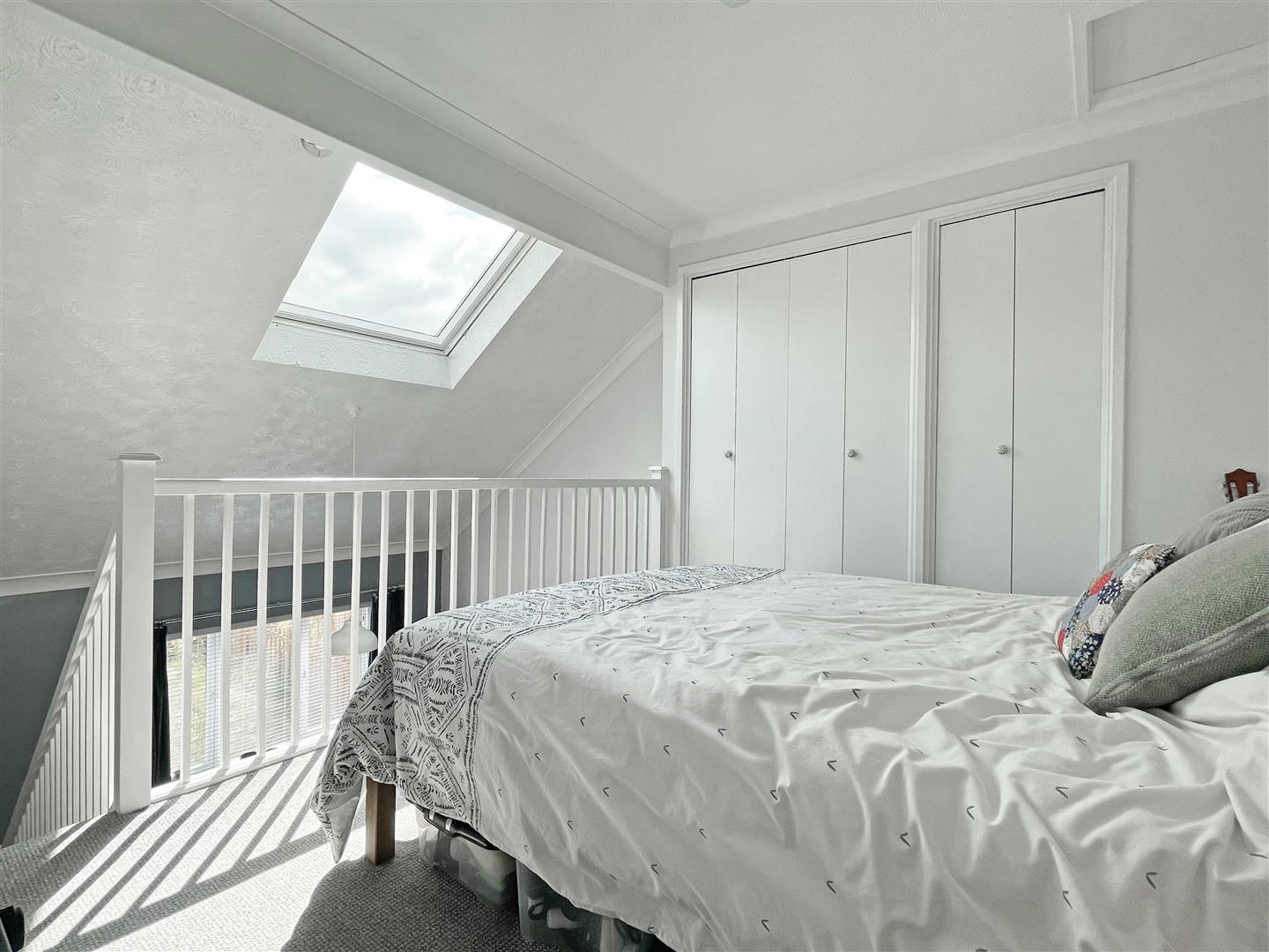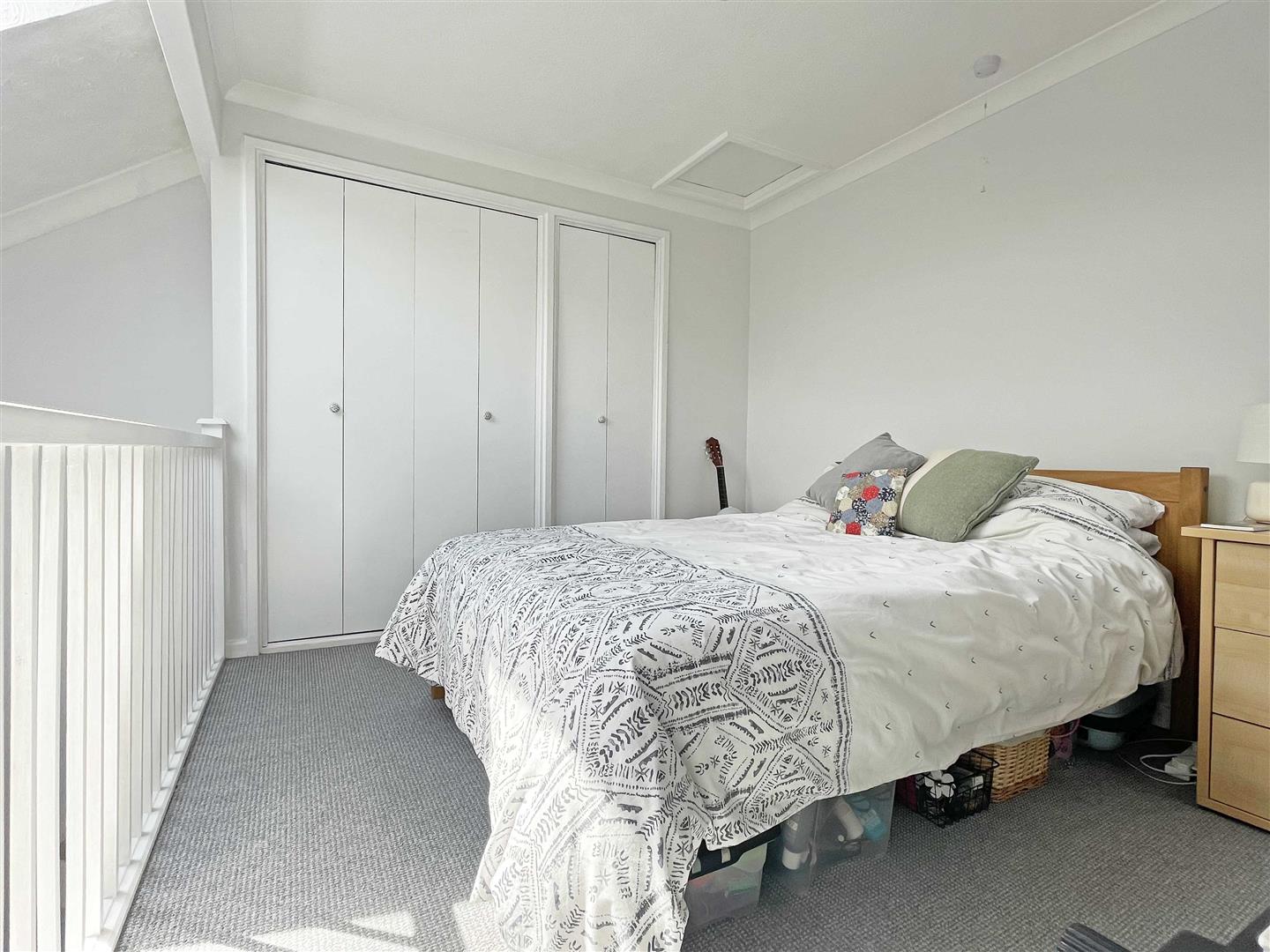 Bedroom:- - 3.33m x 2.69m (10'11" x 8'10") - Double glazed window to side with velux window to front, built in wardrobe/ storage, loft hatch, mezzanine balcony.