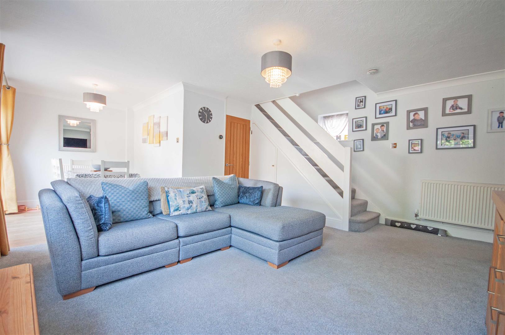 Lounge Diner: - 6.73m x 4.93m > 2.26m (22'1" x 16'2" > 7'5") - Dual aspect double glazed windows to front and rear, sliding door to rear, doors to kitchen, cupboard, cupboard, stairs to first floor, two radiators, part wood effect flooring.