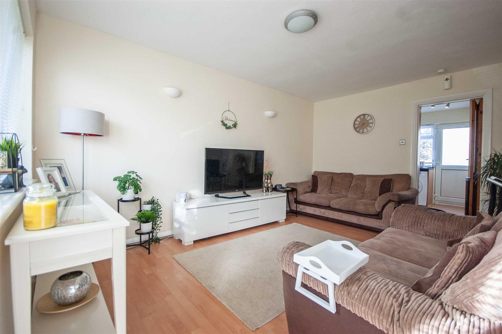 Lounge: - 4.60m x 3.35m (15'1" x 11') - Double glazed window to front, doors to kitchen, inner hall, cupboard, radiator, wood effect flooring.