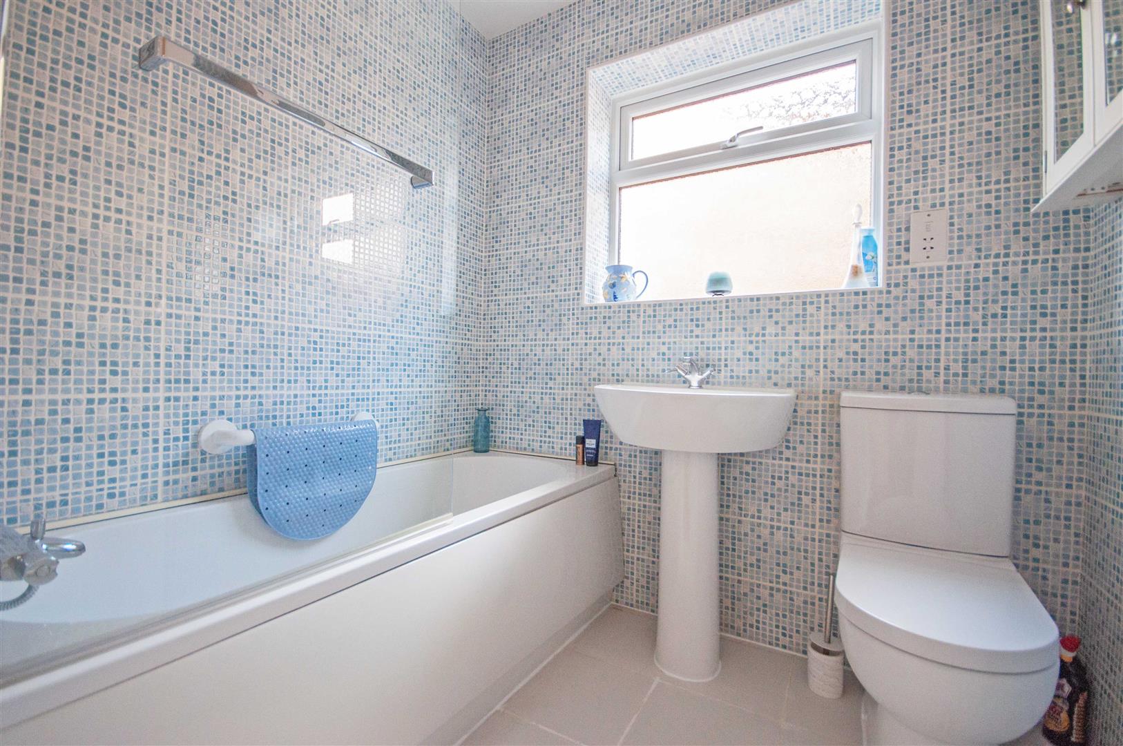 Family Bathroom: - 1.98m x 1.68m (6'6" x 5'6") - Obscure double glazed window to side, panel bath with shower mixer tap, pedestal hand wash basin, low level W/C, towel radiator, part tiled walls, tiled flooring.