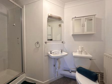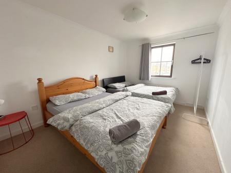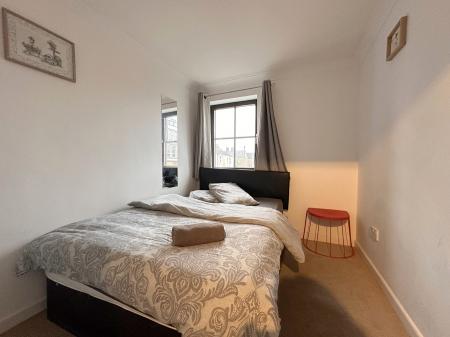 There are two well-sized double bedrooms, both neutrally decorated. The principal bedroom features a modern en-suite shower room, while the second bedroom is served by a separate family bathroom, finished in a clean, contemporary style.