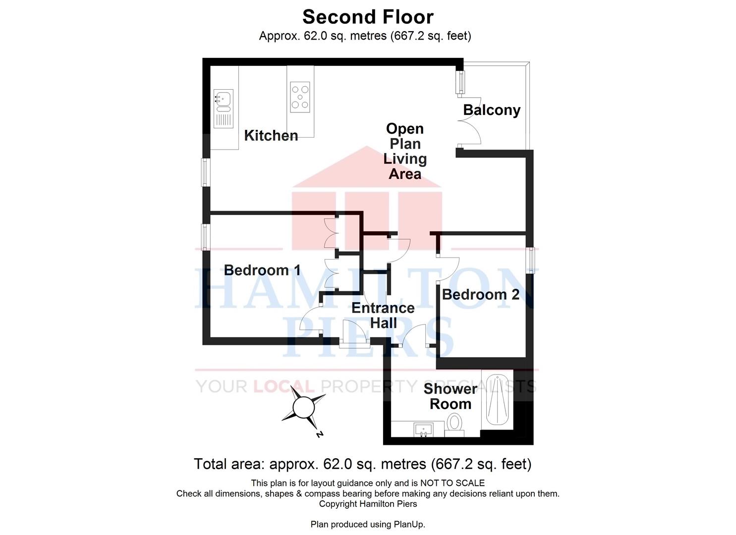 Entrance Hall: - Doors to bedroom one, bedroom two, shower room, entrance to open plan living area, two cupboards, radiator, wood effect flooring.