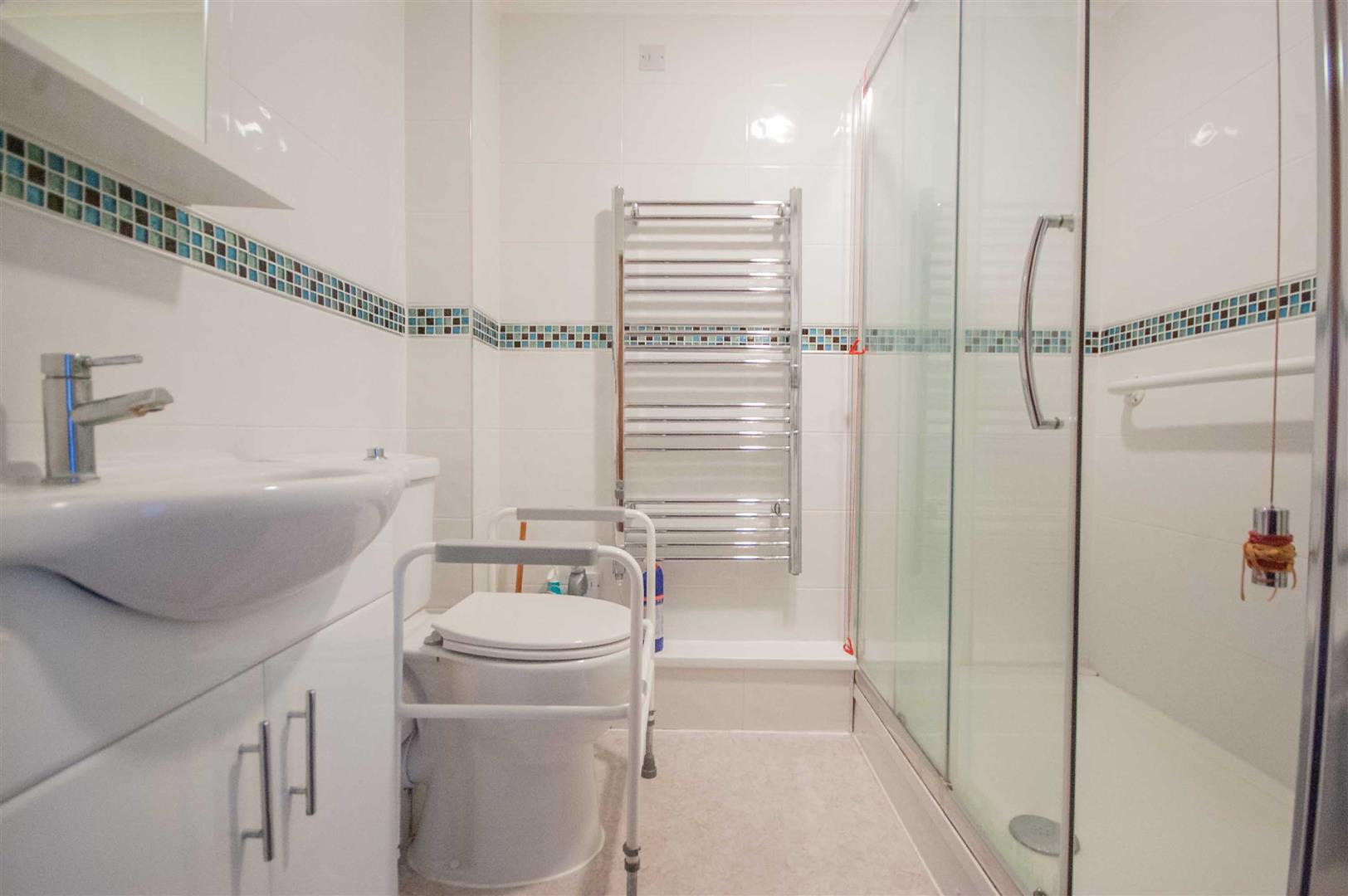 Shower Room: - 2.11m x 1.70m (6'11" x 5'7") - Fully tiled shower cubicle, vanity hand wash basin, low level W/C, chrome towel radiator, tiled walls.