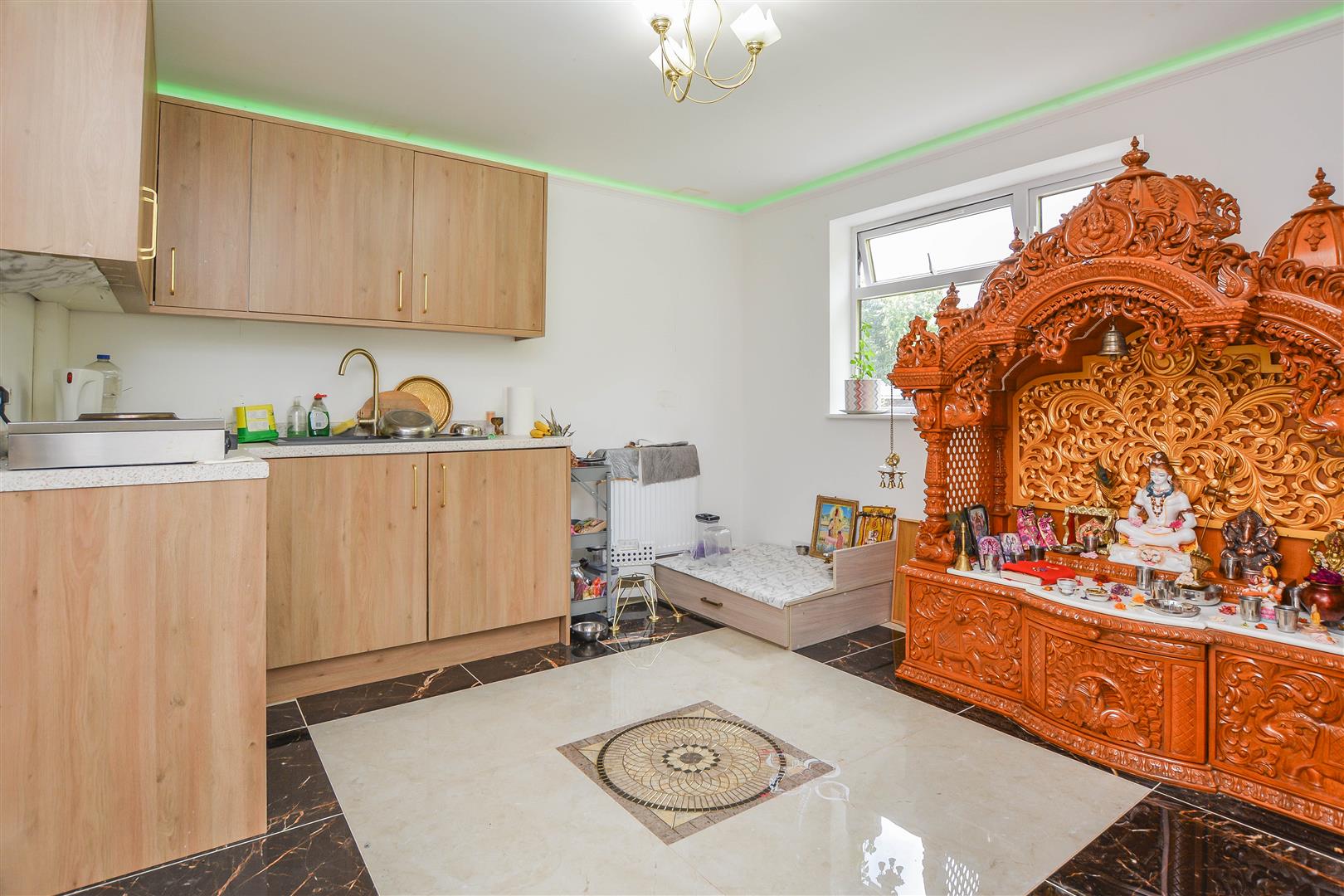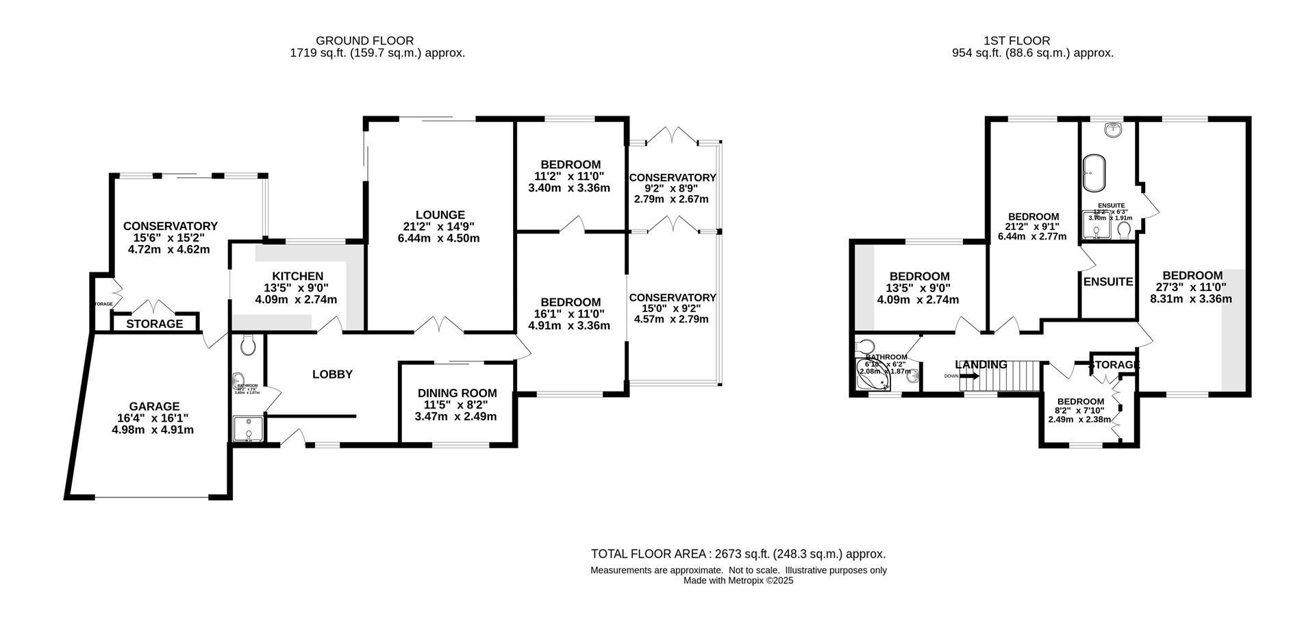 This floor also hosts two double bedrooms, both opening into a conservatory that creates a versatile extension of living space-ideal as additional bedrooms, a study, or a relaxation area. A modern shower room and an integrated garage complete the ground floor.