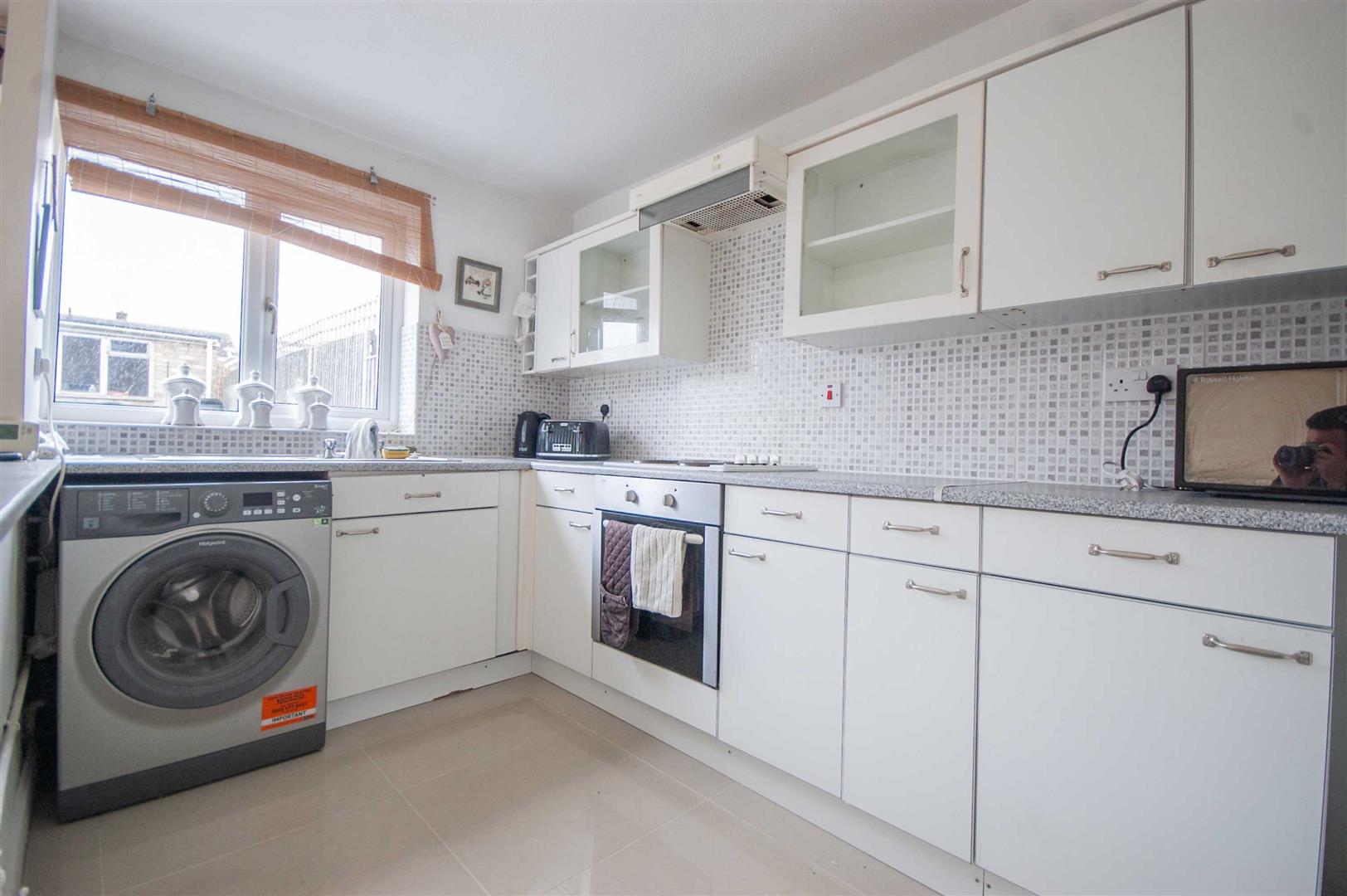 Kitchen Diner: - 4.67m x 3.15m (15'4" x 10'4") - Double glazed sliding door and window to rear, range of wall and base units, rolled edge work surfaces with stainless steel integrated low level oven, electric hob with extractor over, space for washing machine, fridge freezer, two cupboard, radiator, part tiled walls, tiled flooring.