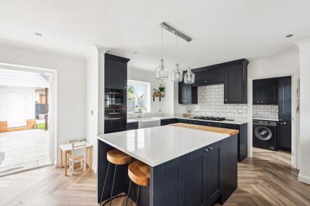 On the ground floor, the accommodation unfolds gracefully, featuring a lounge, playroom or dining room, kitchen/breakfast room, utility area, and cloakroom. Ascend to the first floor to find four bedrooms, including an newly fitted en-suite shower room adjoined to the master bedroom and another en-suite to the second bedroom, alongside a well-appointed family bathroom.