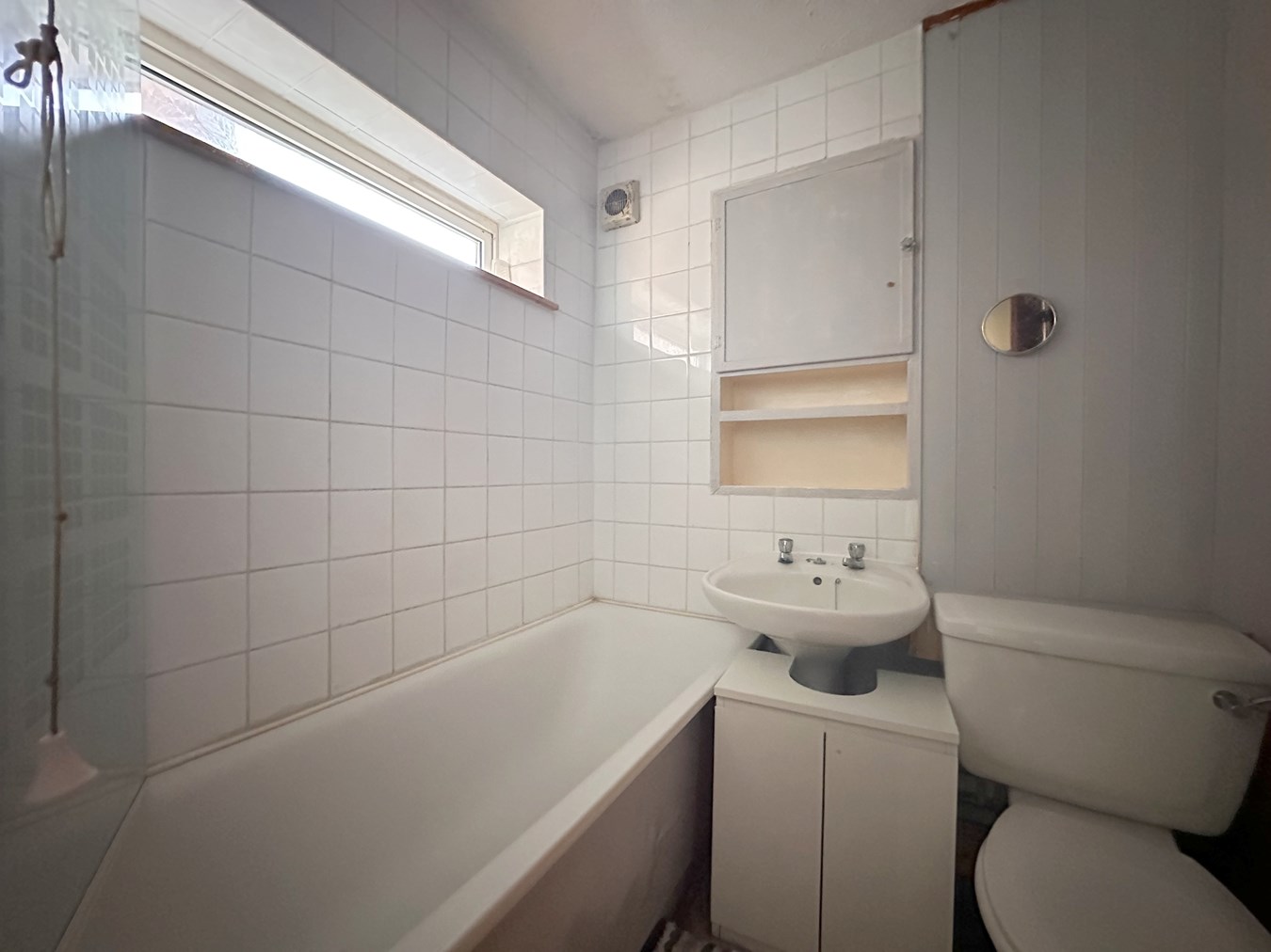 The kitchen measures 3.46m x 2.00m (11’4” x 6’7”) and overlooks the rear garden. The kitchen would benefit from full modernisation and offers scope for reconfiguration, subject to the necessary consents.