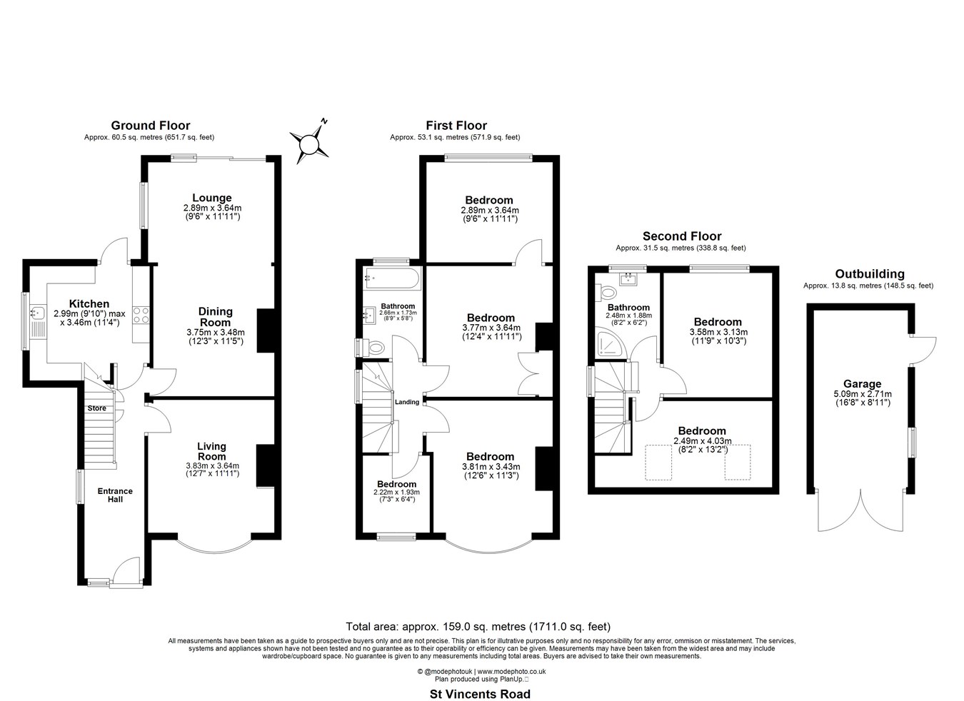- Set over three floors with 1,711 sq. ft. of living space