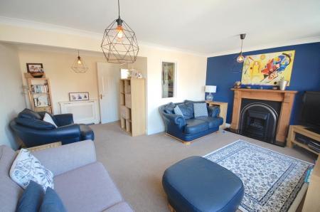 Two double glazed windows to front aspect, feature fireplace with wood surround and gas fire, two radiators with covers, T.V and telephone points, carpet flooring and smooth coved ceiling.