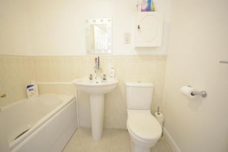 Opaque double glazed window to rear aspect, fully tiled shower cubicle with power shower, pedestal wash hand basin, low level w.c., mosaic splashbacks, radiator, shaver point, extractor fan and smooth ceiling.