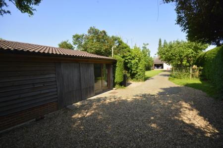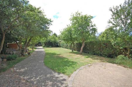 The property is approached via a gravel driveway which offers extensive parking, all set behind hedging and with access to the front door and further driveway to the rear garden.
