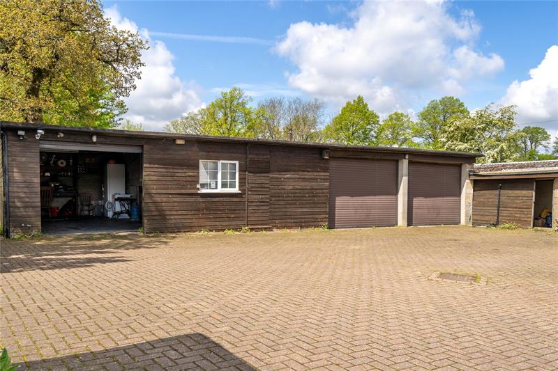 Three garages with workshop and office also previously used as games room.