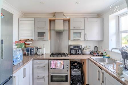Kitchen: The kitchen is positioned adjacent to the living space and is well equipped with wall and base units, tiled splashbacks, and space for appliances. Its practical layout and open connection to the reception area make it ideal for modern living.