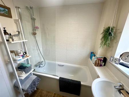 Bathroom - 2.13m x 1.96m (7'0 x 6'5) - Suite comprising panelled bath with mixer tap and shower detachment, integrated wash hand basin, WC, heated towel rail, tiled splashbacks, extractor fan, rear aspect frosted window.