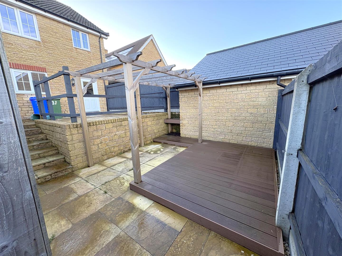 Outside - To the front of the property, there is side by side parking for two vehicles, canopy over the front door, outside light. An alleyway provides pedestrian rear access to the rear garden. The rear garden is designed for low maintenance and the top tier is laid to patio with outside lighting. Steps lead down to the lower terrace with paved area, raised composite deck with pergola, all enclosed by wood panel fencing.