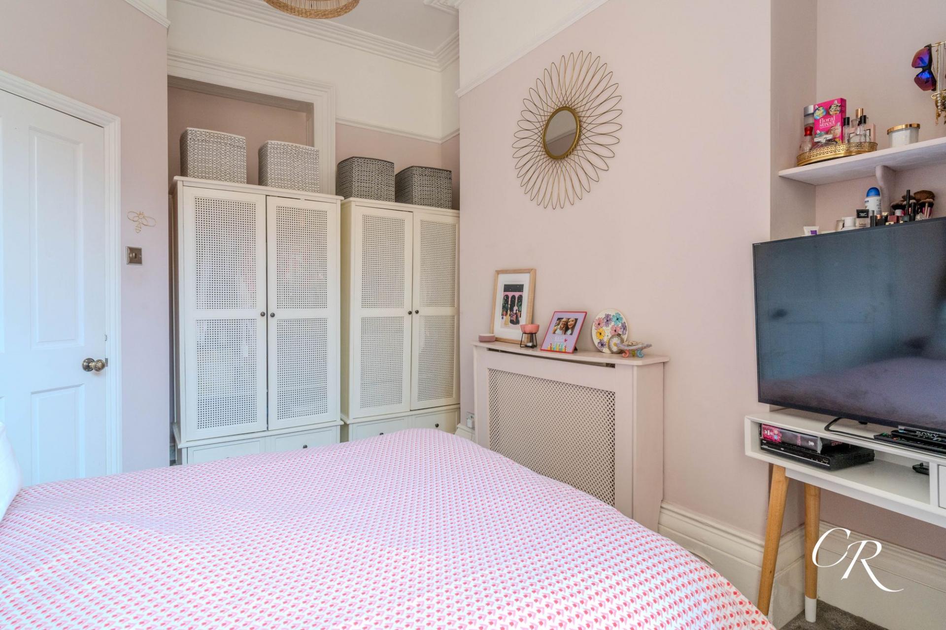 Bedroom:This charming double bedroom offers a calm and restful retreat. A large sash window allows natural light to fill the room, complementing the soft, neutral décor and creating an airy feel. The high ceilings and decorative coving add a sense of elegance, while ample space is provided for wardrobes and storage. Well proportioned and inviting, this bedroom combines period character with modern comfort, making it a delightful space to unwind.