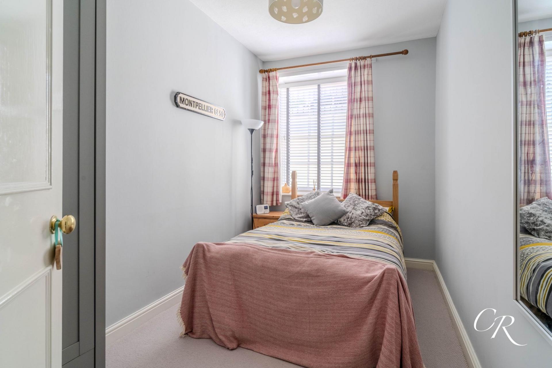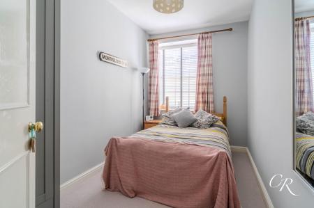 Bedroom Two: A second room, also facing the front, provides flexibility as a guest bedroom or an additional home office. Bright and neutrally decorated, it offers valuable extra space.