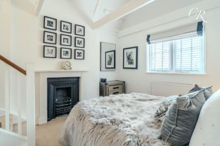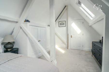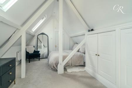 Bedroom One: Occupying the top floor, this impressive principal bedroom is full of character with vaulted ceilings, painted beams, skylight windows and generous proportions. Ample cleverly designed eaves storage is built into the room, maximising space while retaining the sense of openness.