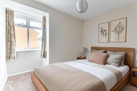Bedroom Three: A comfortable roadside facing double bedroom benefitting from built in storage space.
